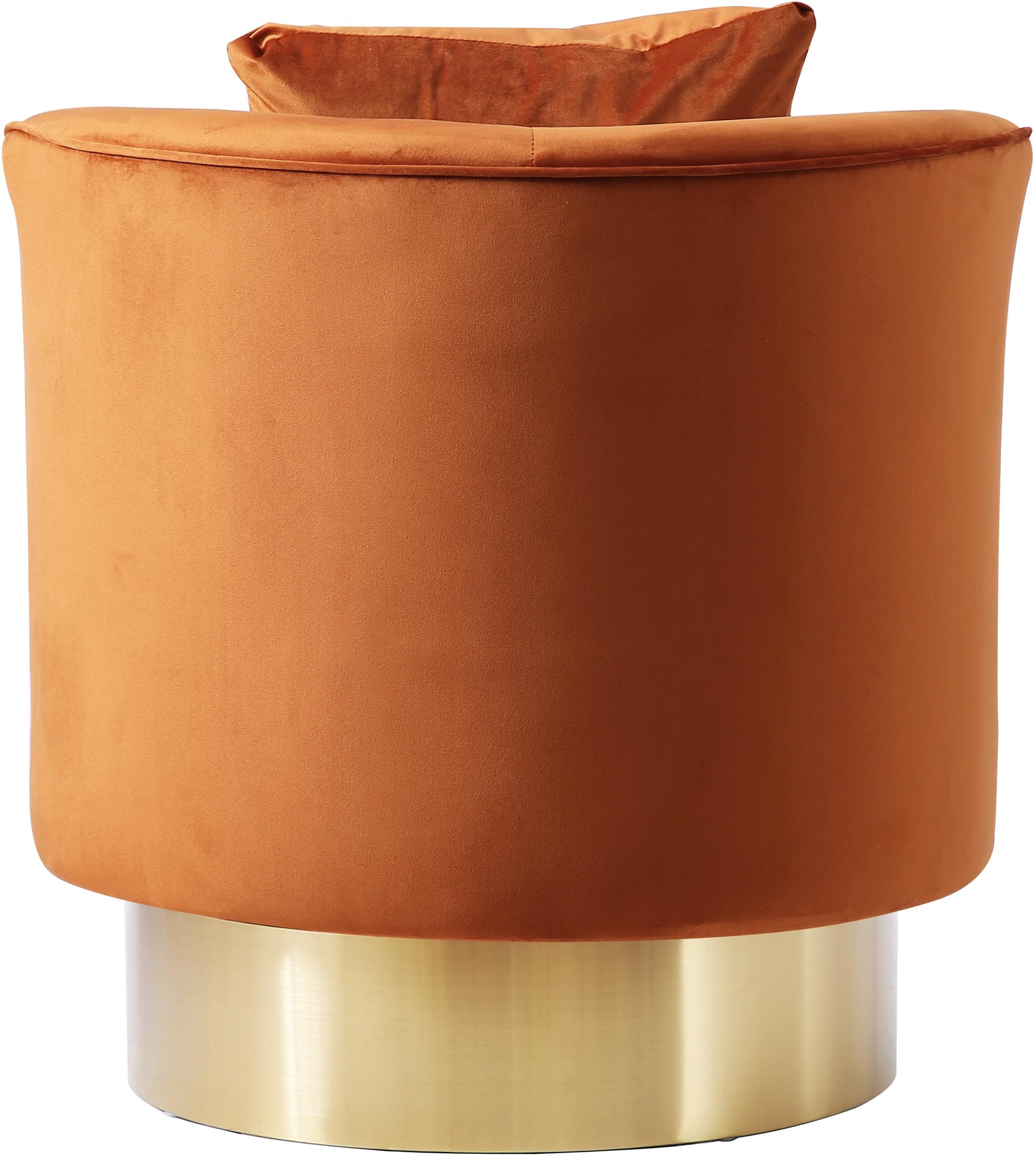 All eyes will be on this grand piece when you complement your living room with this bold cognac velvet Kendra accent chair. Upholstered in stunning rich cognac-colored velvet, this contemporary chair's round design is not only boldly fashionable, but provides you with the utmost comfort while you sit. A gold swivel base complements its gallant color, while also making it easy for you to turn this way and that while seated.