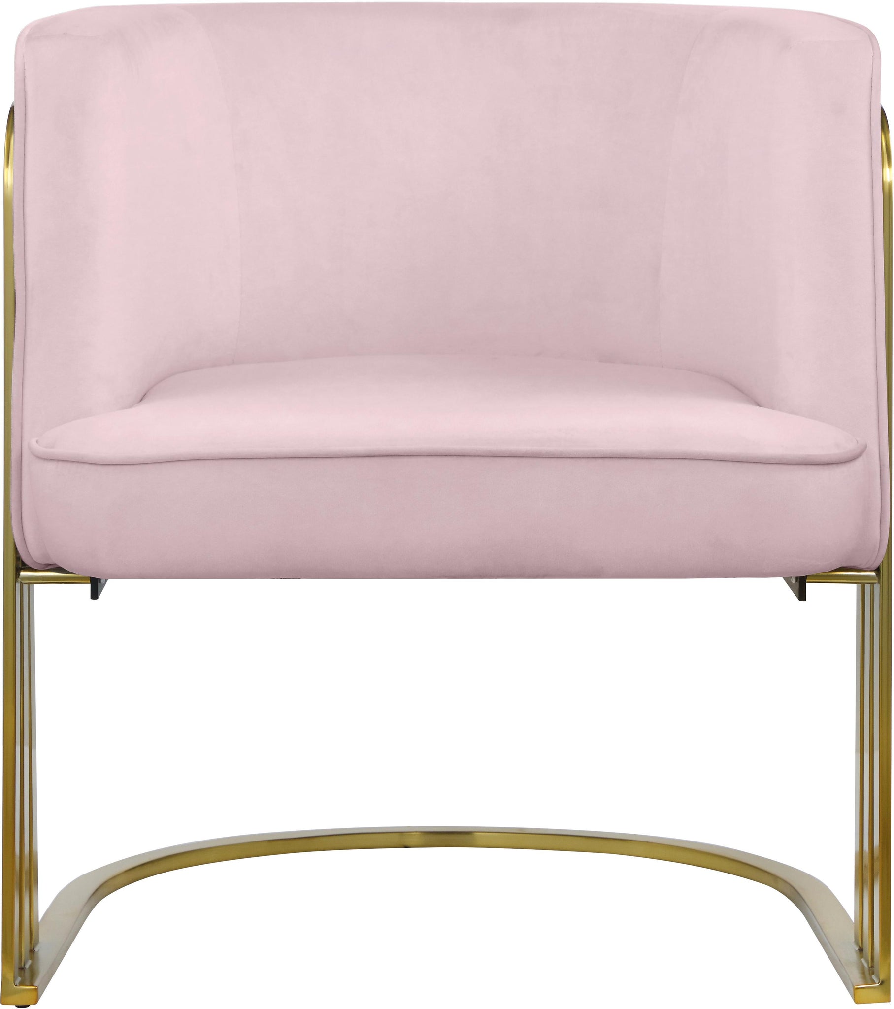 Set your interior space up for drama with this Rays velvet accent chair. This bold design is a guaranteed eye-catcher from any angle and in any room. The soft pink velvet upholstery adds to its upscale feel, and the brushed gold metal finish on the legs and frame drive home its contemporary feel. Place it in any room where you want to enjoy the best seat in the house.