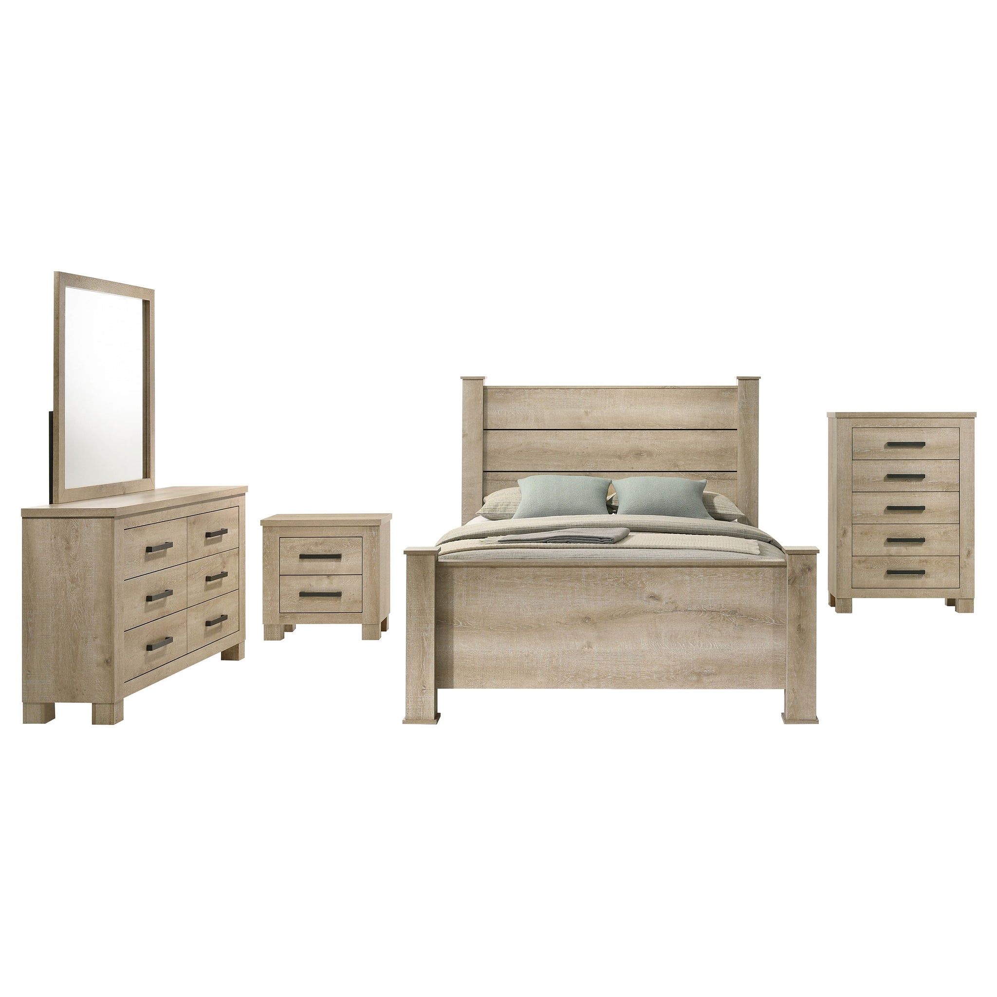 Elevate your bedroom with this cohesive set, designed to blend rustic charm and modern sophistication. Featuring a weathered oak finish, it highlights natural wood grain textures for a warm, inviting atmosphere. Constructed from engineered wood with a scratch-resistant veneer, this set ensures durability and long-lasting appeal. Dark bronze accents add a bold, contemporary touch, while ample storage and thoughtful design make it both functional and stylish. Perfect for rustic or transitional interiors, this set transforms your space with timeless elegance.
