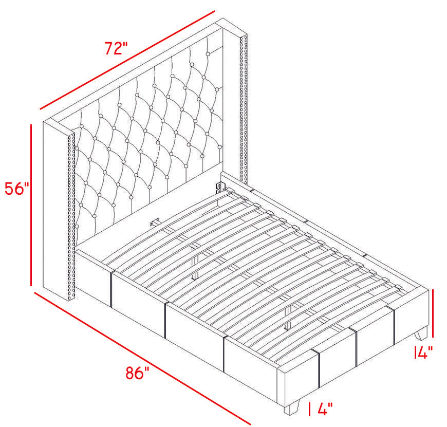 Elegant and eye-catching, the stunning Ashton Bed from Meridian Furniture is the perfect addition to any space. Rich Linen covers the deep tufted design. A beautiful wing bed design is complimented by hand applied chrome nail head details. Strength and beauty is guaranteed with a solid wood frame and legs.