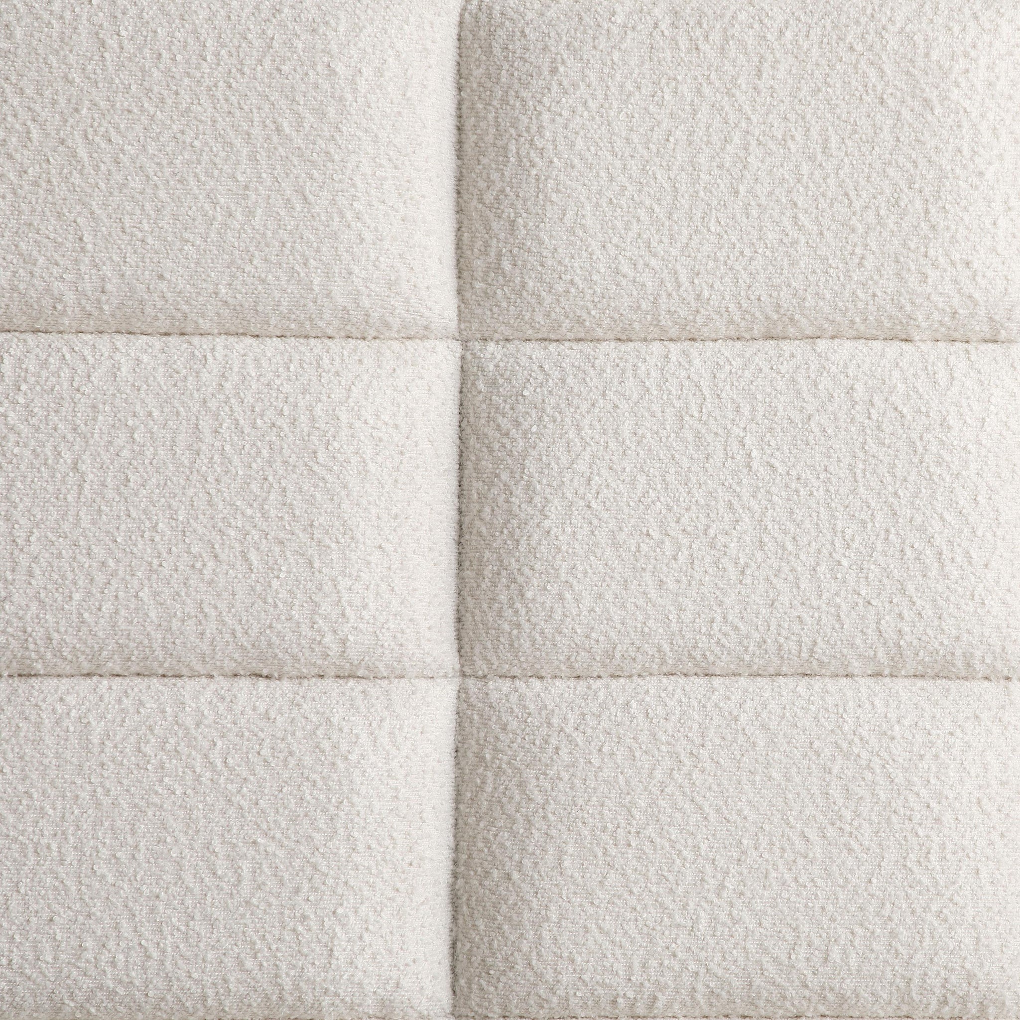 Elevate an inviting master or guest bedroom with the refined flair of this modern upholstered bed. It boasts a wooden frame in a taupe oak finish, creating a neutral palette. Cream upholstery is grid tufting, adding to the architectural appeal of this charming bed. The extra-tall headboard is paired with a low footboard, establishing an open, airy presentation in your bedroom. You'll love lounging against its foam cushioning and relaxing in comfort.