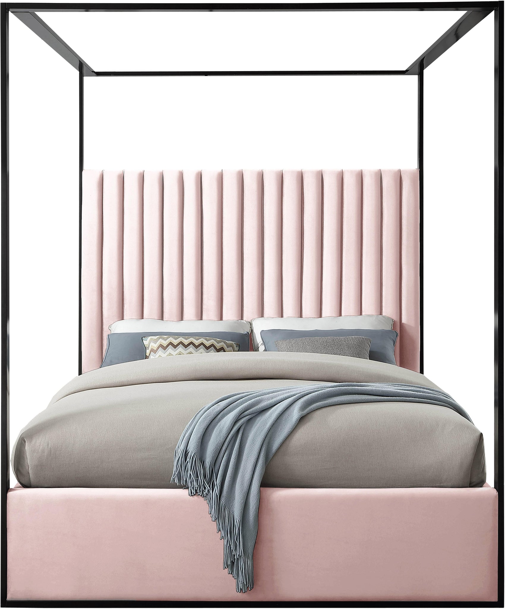 Elegant and eye-catching, the stunning pink velvet Jax King Bed from Meridian Furniture is the perfect addition to any space.