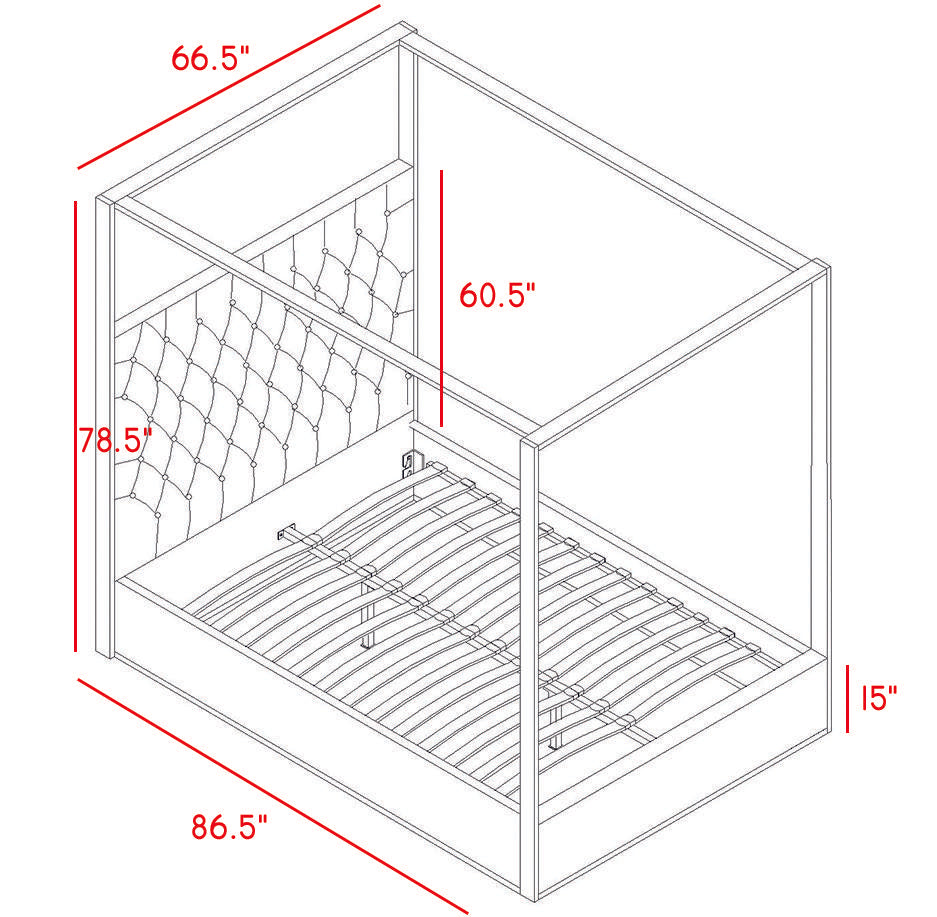 Dream big in the Porter white velvet canopy bed. This handsome Meridian Furniture bed has a tufted headboard that stands a full 60 inches tall, giving the bed a regal and sophisticated look. The headboard is tufted for added elegance, and the bed comes with a chrome canopy, adding to its overall elegance and grandeur. White velvet fabric used on the sides and headboard gives it a luxe vibe, and the headboard is heavily padded, making it an ideal backrest for reading or watching TV.