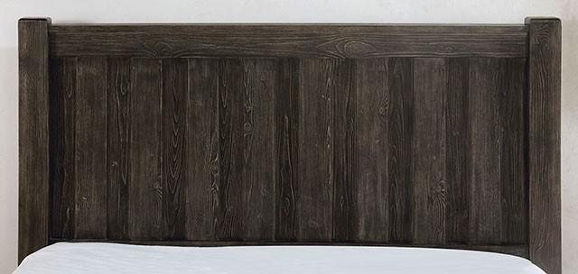 REGENSBURG Queen Bed, 86 1/2"L X 64"W X 48"H, 136.4lbs. Take the rustic appeal of this bedroom set home with you! Simplistic in design but plenty in charm, this barn-style collection will fit into any home. The bed features textured planks arranged vertically, while the barnyard style case goods feature round drawer knobs. Convenience is also available through the built-in USB charger embedded on the night stand.