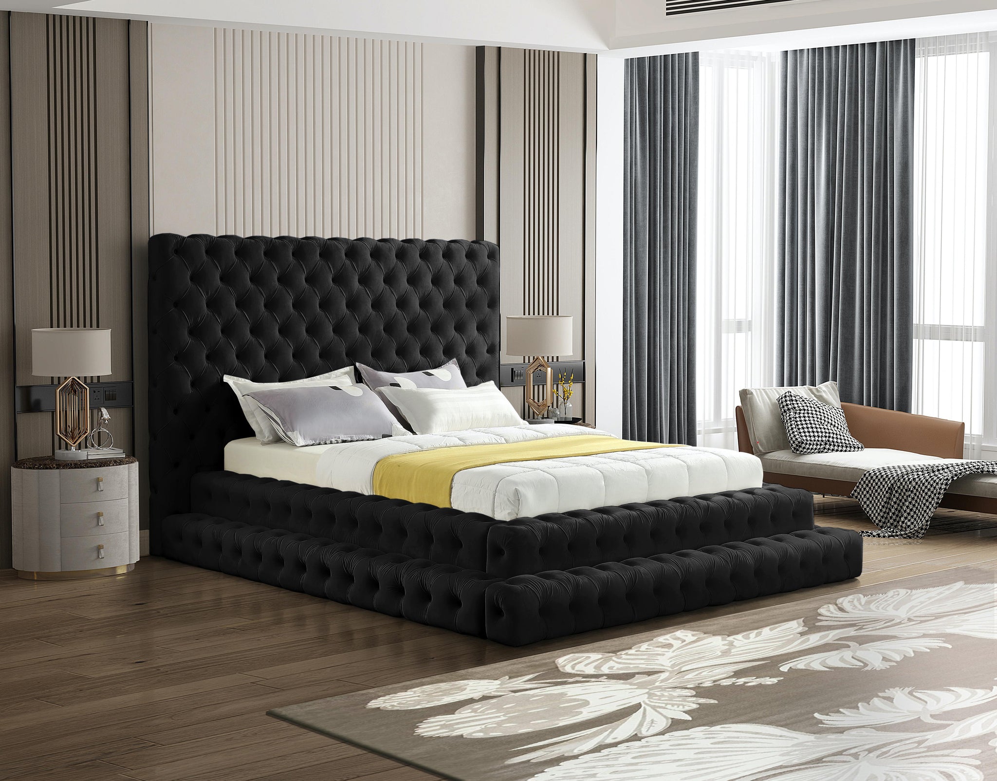 Revel Black Velvet Queen Bed (3 Boxes)