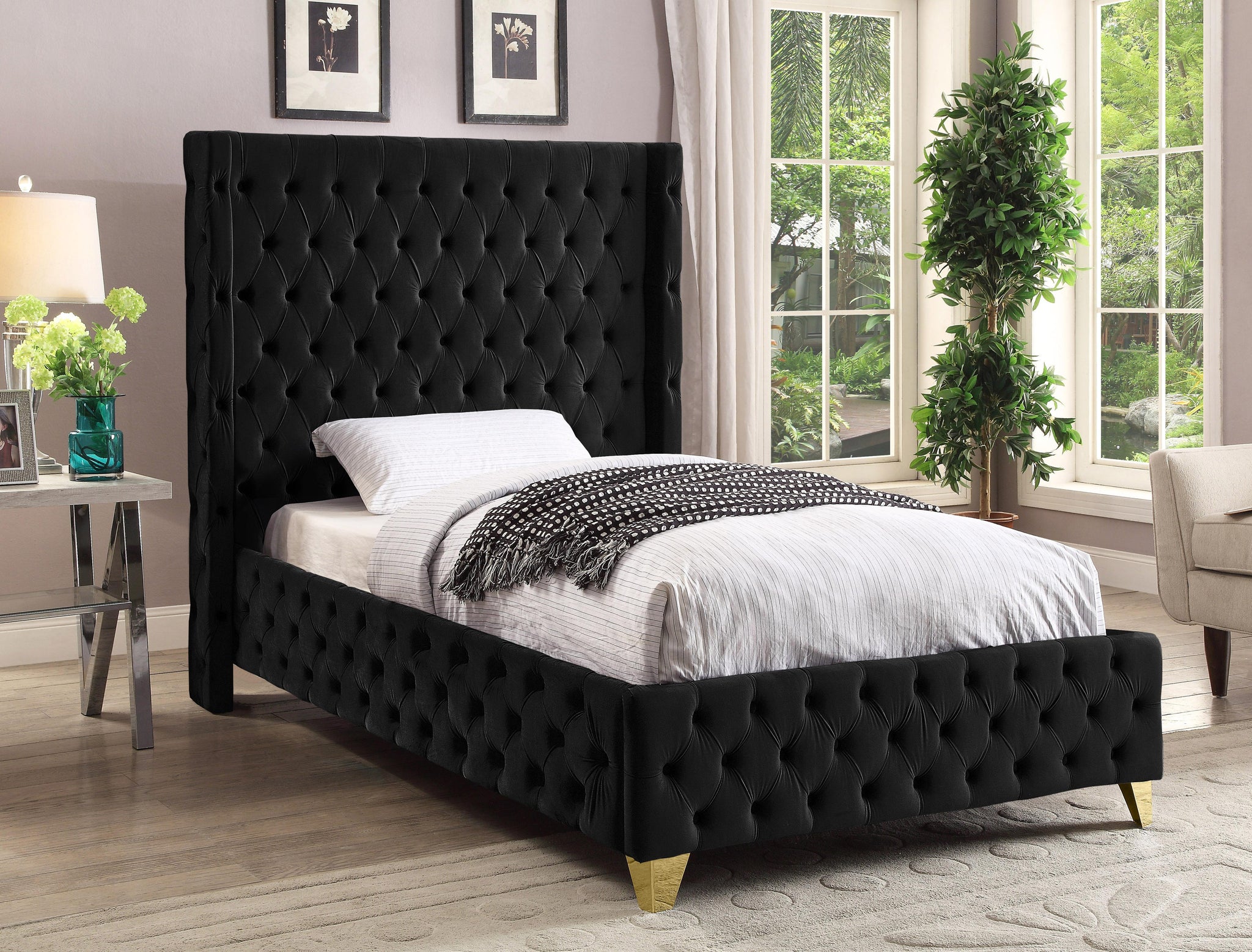 Savan Black Velvet Twin Bed