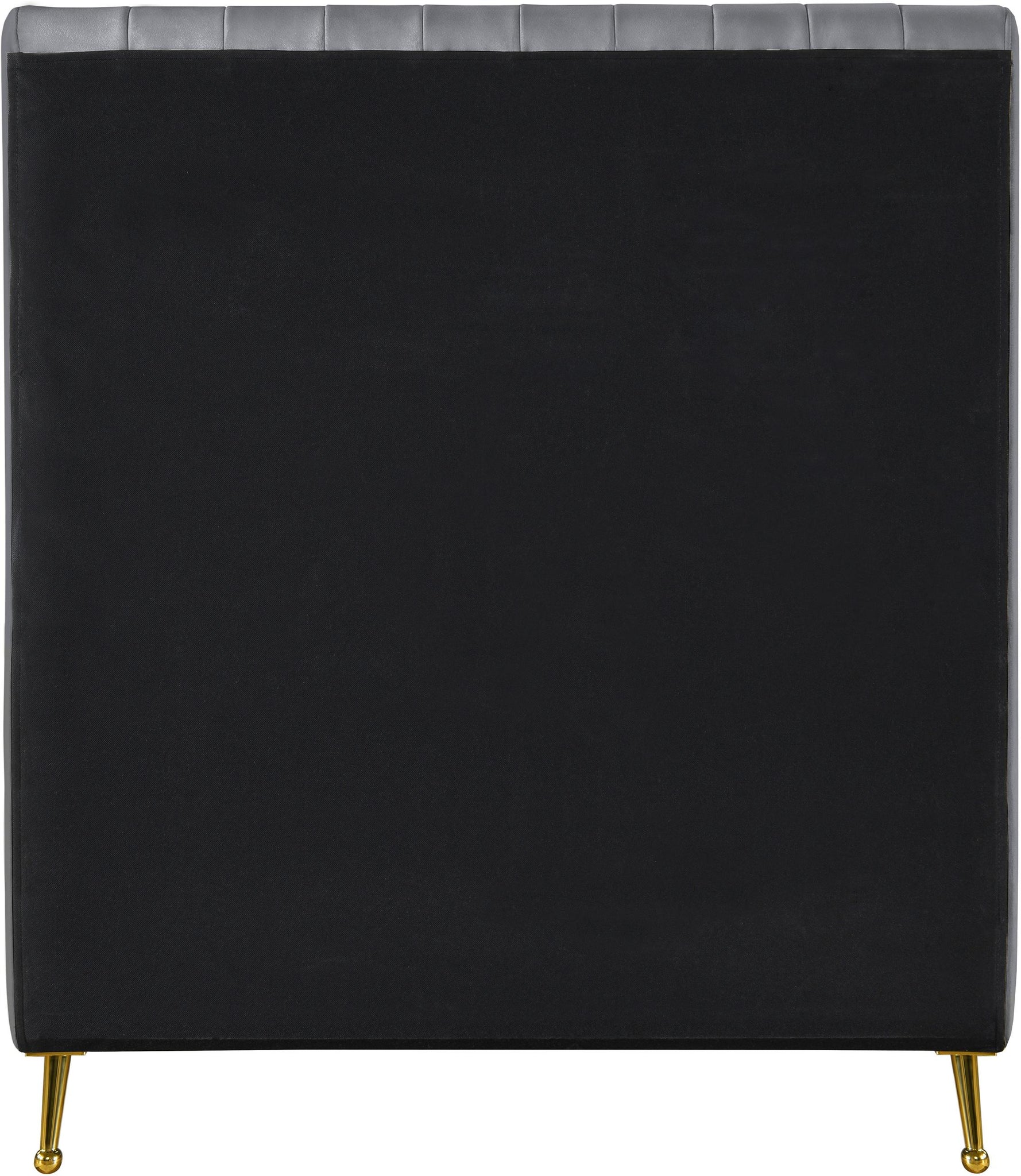 Slip into the lap of luxury with this Zara Velvet Bed. This beautiful twin bed is padded to the max on its headboard and footboard for a look that is nothing short of upscale. The luxe design is amplified by the bed's rich grey velvet upholstery and its deep detailed channel tufting, which also serves to keep the interior padding aloft, full, and comfortable while you relax or unwind in bed. The bed has gold legs for a regal touch, and it comes with slats, so it doesn't require a box spring.