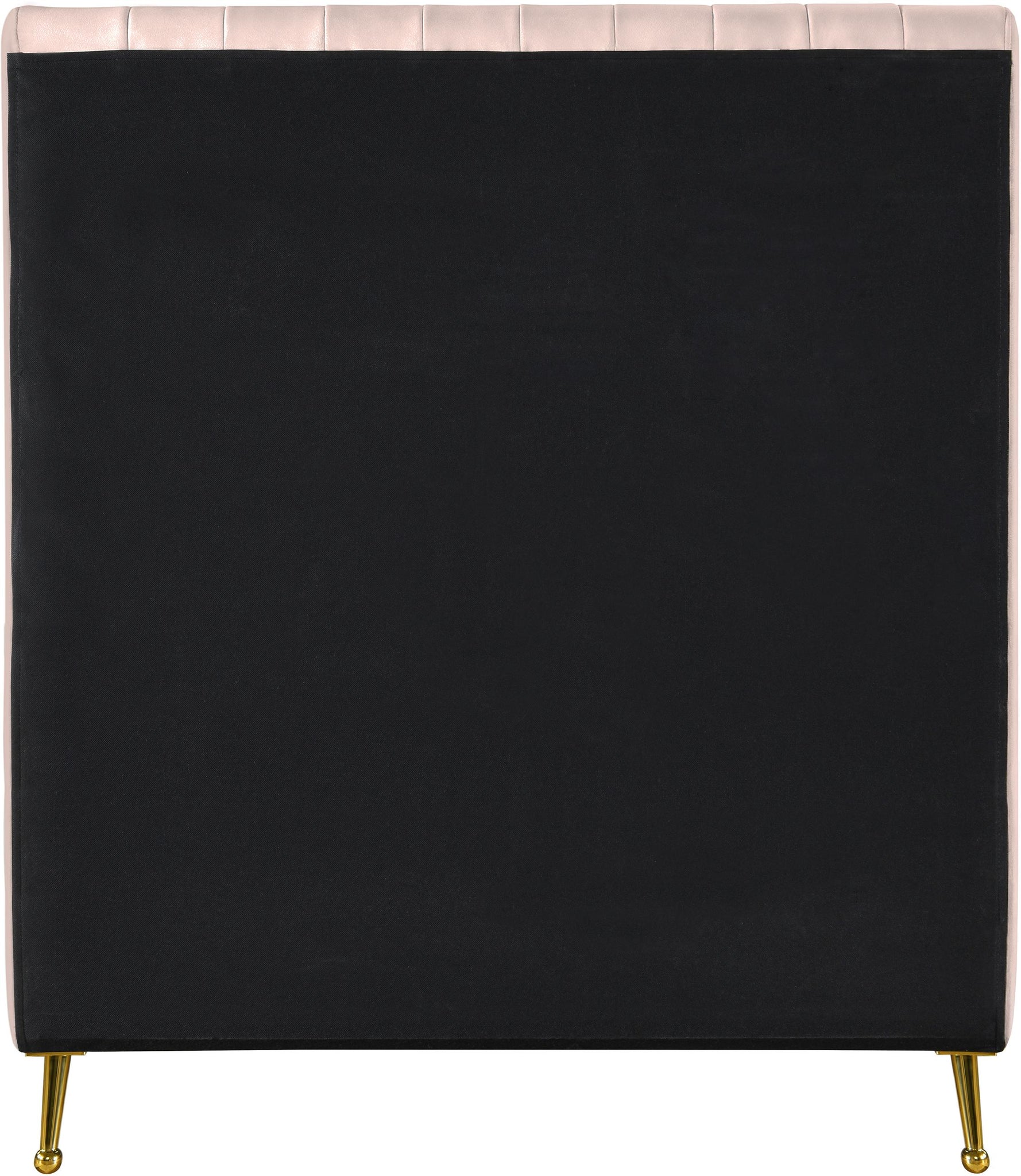 Slip into the lap of luxury with this Zara Velvet Bed. This beautiful twin bed is padded to the max on its headboard and footboard for a look that is nothing short of upscale. The luxe design is amplified by the bed's rich pink velvet upholstery and its deep detailed channel tufting, which also serves to keep the interior padding aloft, full, and comfortable while you relax or unwind in bed. The bed has gold legs for a regal touch, and it comes with slats, so it doesn't require a box spring.