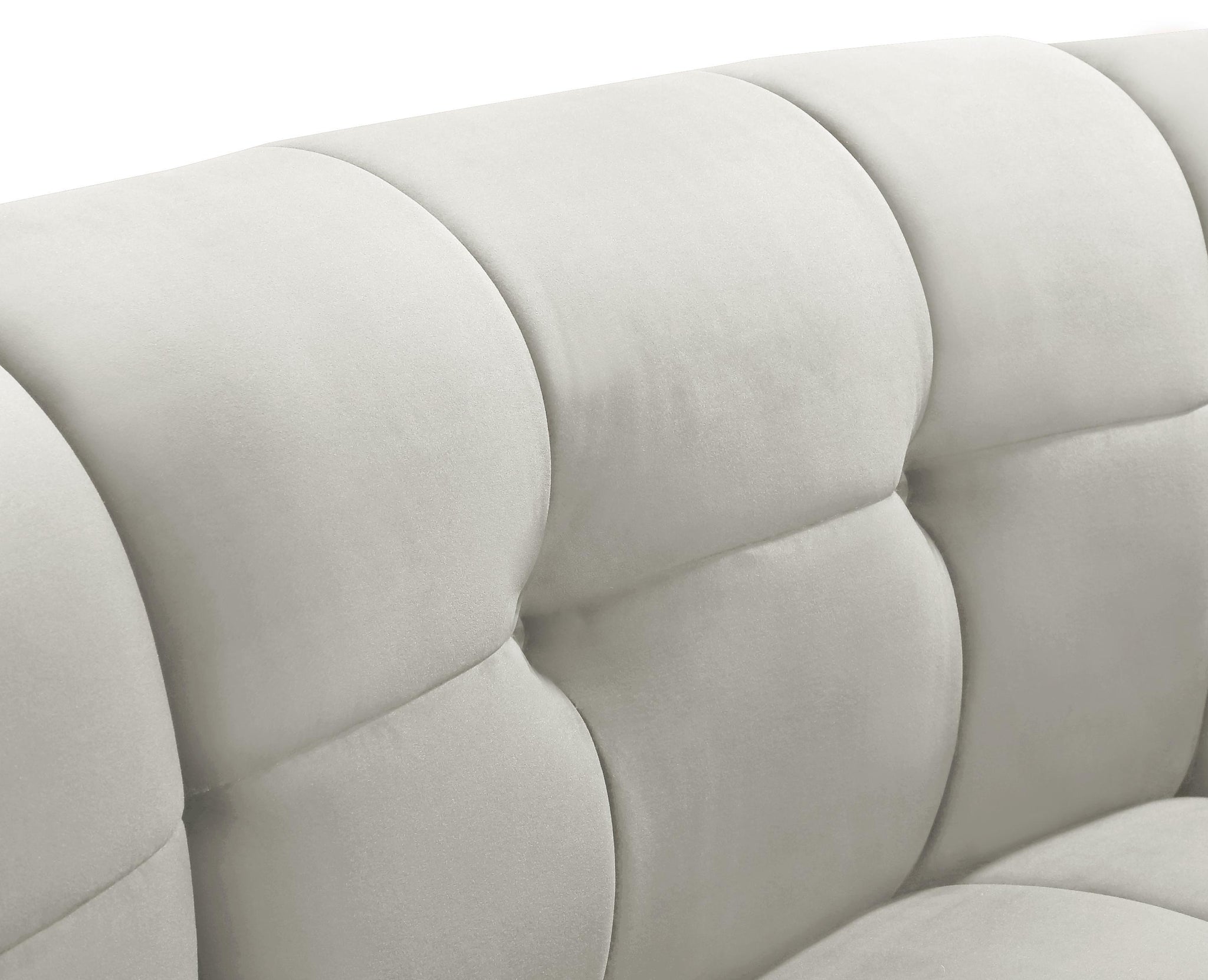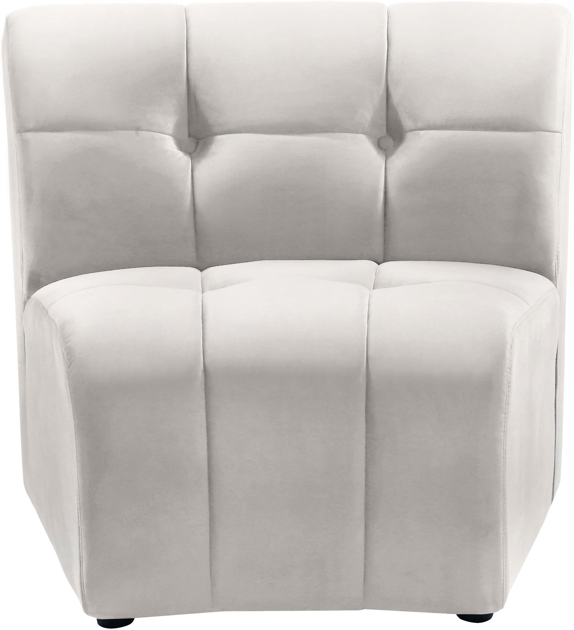 Invest in your home's comfort with this Limitless chair. This modular unit offers tons of flexibility in the number of ways that you can put each piece in the Limitless collection together to get the ideal customized look. Upholstered in cream velvet, this beautiful piece is soft and cool to the touch, so you can feel comfortable from every angle. Button and channel tufting add to this unit���s upscale look and contemporary charm.