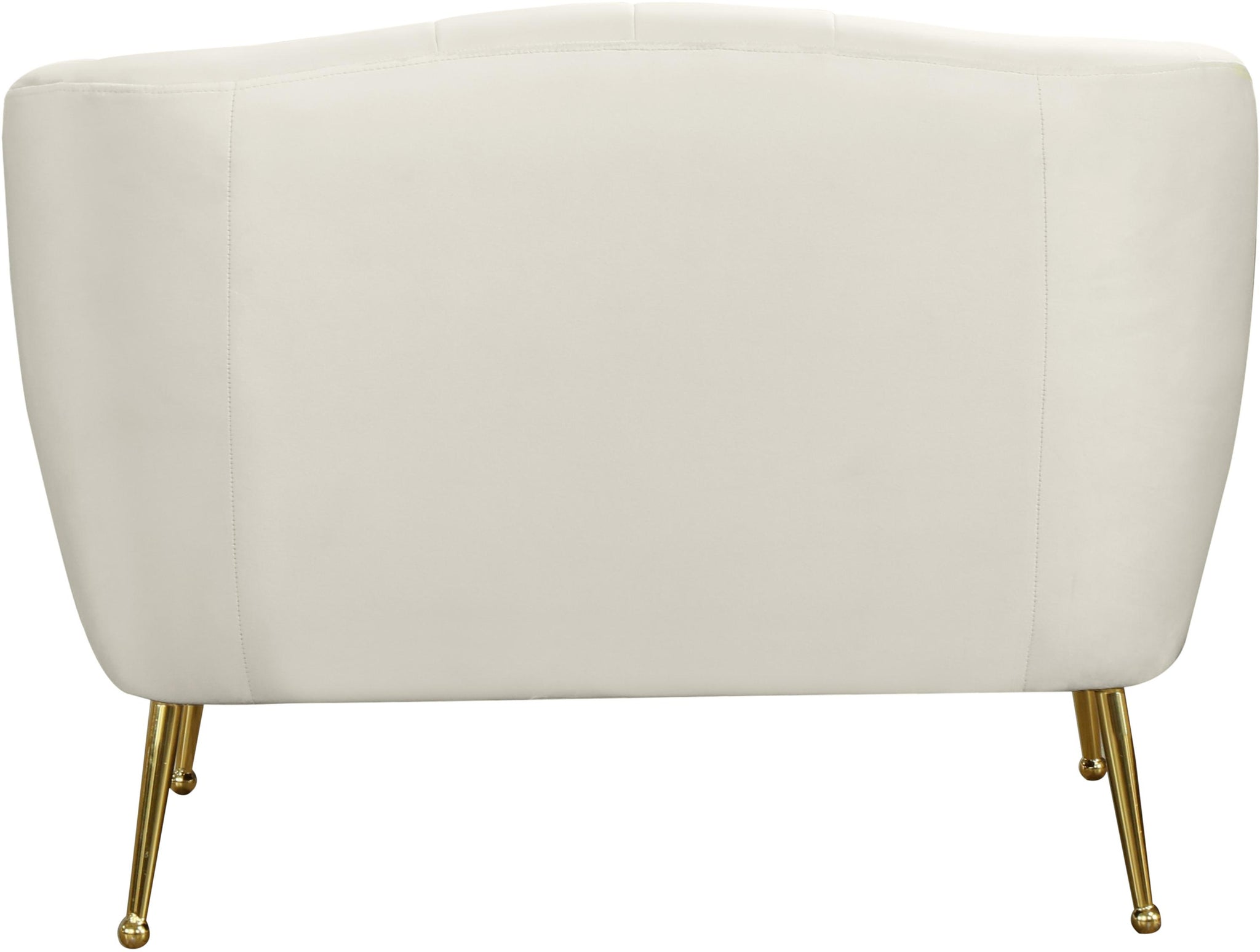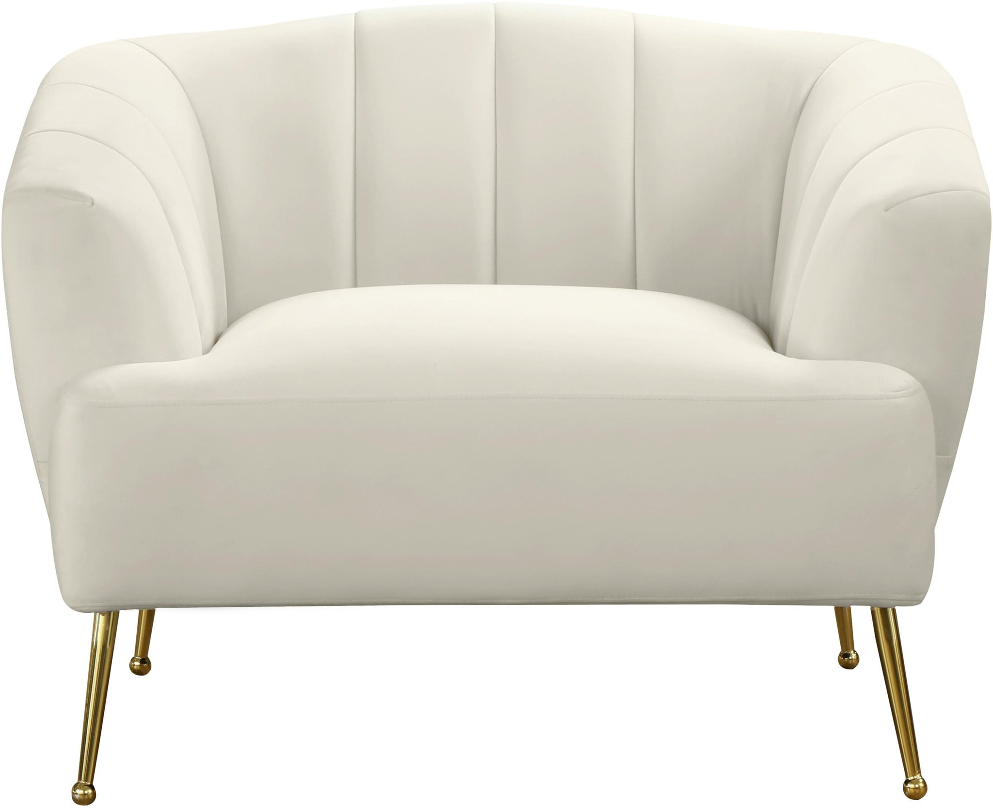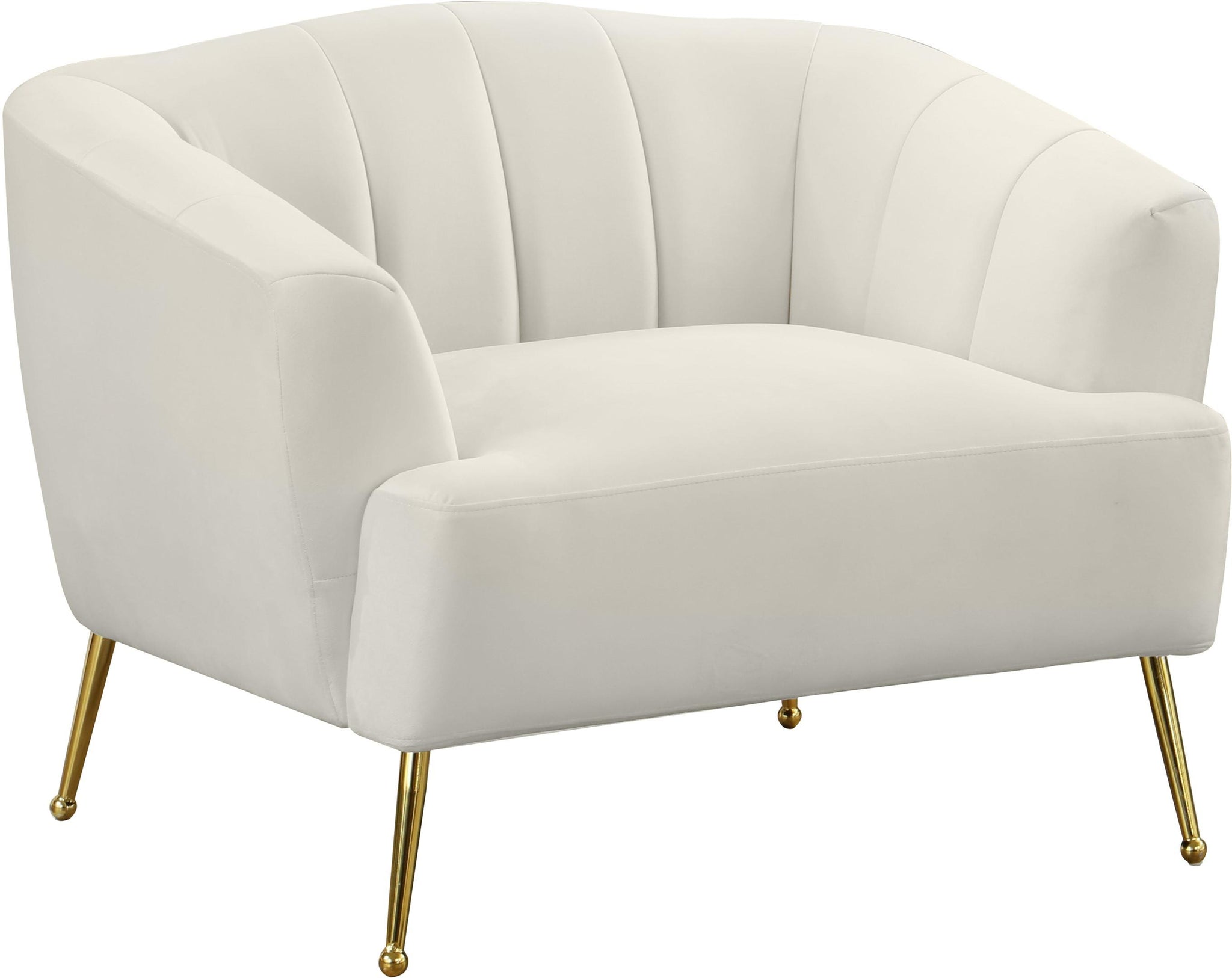 Dress up your living room space with this Tori Velvet Chair. This plush chair features chic cream velvet upholstery that covers every square inch, adding a sumptuous and svelte look to your room. The gold legs with a ball design on the foot adds to the elegant look of this pretty chair, and deep channel tufting adds loft to the back and arms for a lavish feel when you sit down to relax and unwind at day���s end.