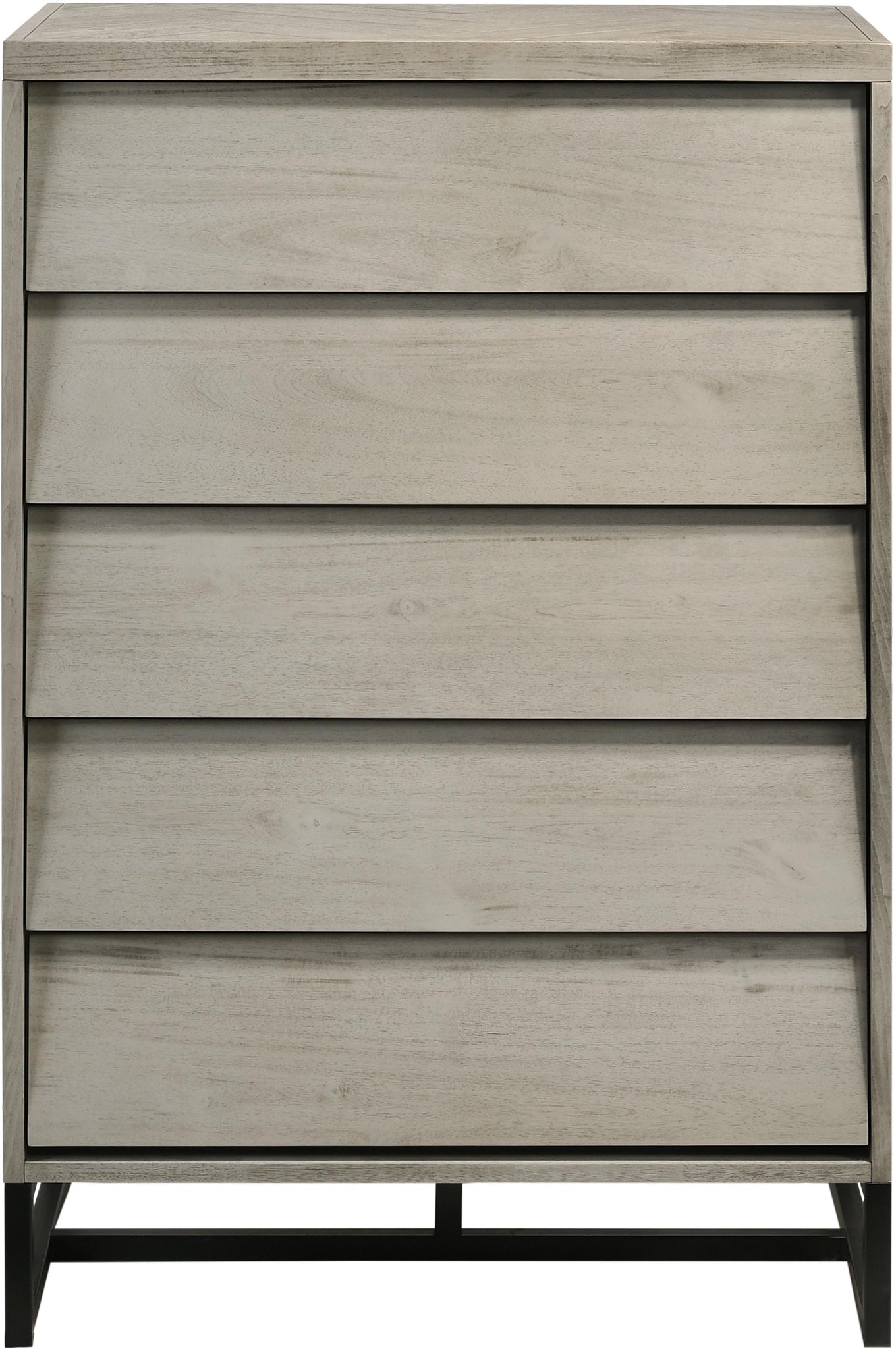 Count on this Weston chest of drawers to give your bedroom a burst of industrial midcentury charm along with organizational power for your belongings. Each piece features a grey stone wood finish that���s modern and bold���and that looks both sleek and chic in your contemporary bedroom. Mix and match the pieces of this elegantly eye-catching collection to suit your space requirements and needs.