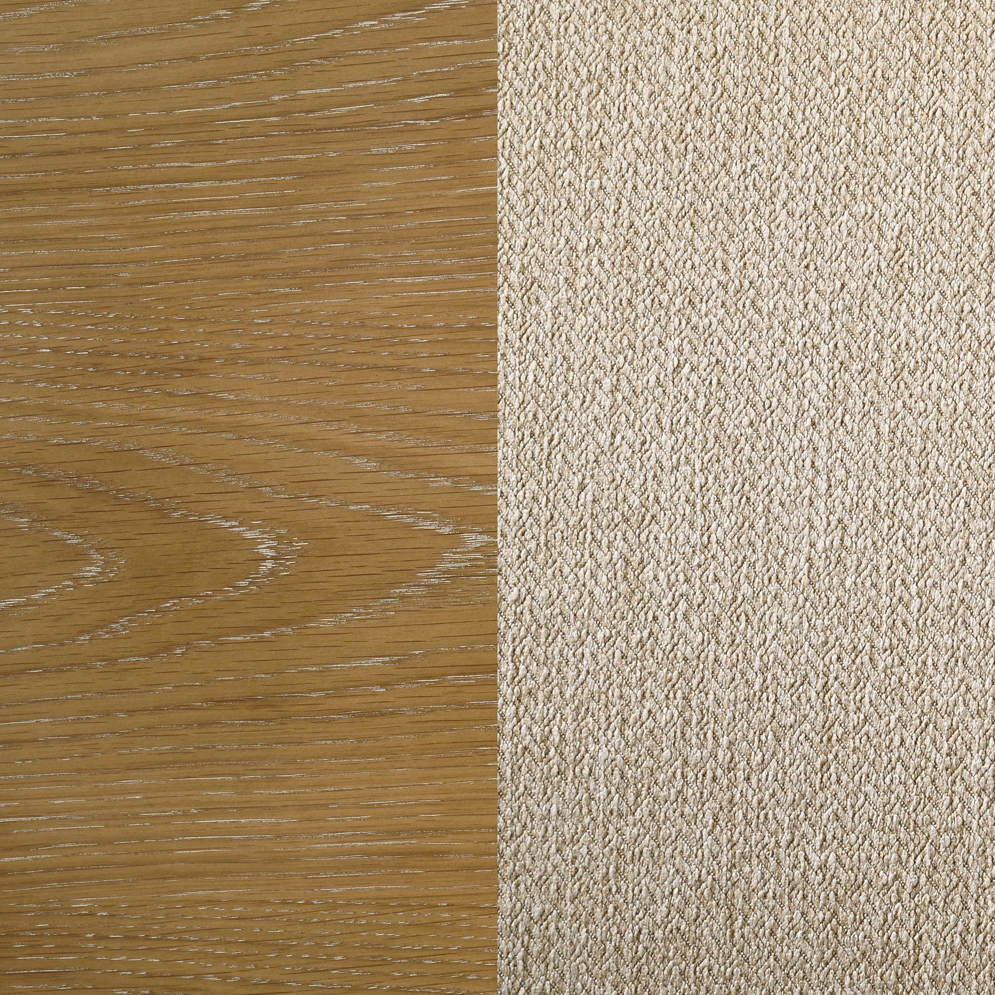 Put finishing touches on an inviting kitchen or dining room table with a set of two modern farmhouse dining chairs. Each boasts an armless silhouette with a ladder back design that adds timeless character. The warm brown oak wood grain finish is classic, ensuring an inviting presence in your space. The chairs are complete with foam padding over their seats, covered in latte finish upholstery. Choose these chairs to enhance a welcoming kitchen table.