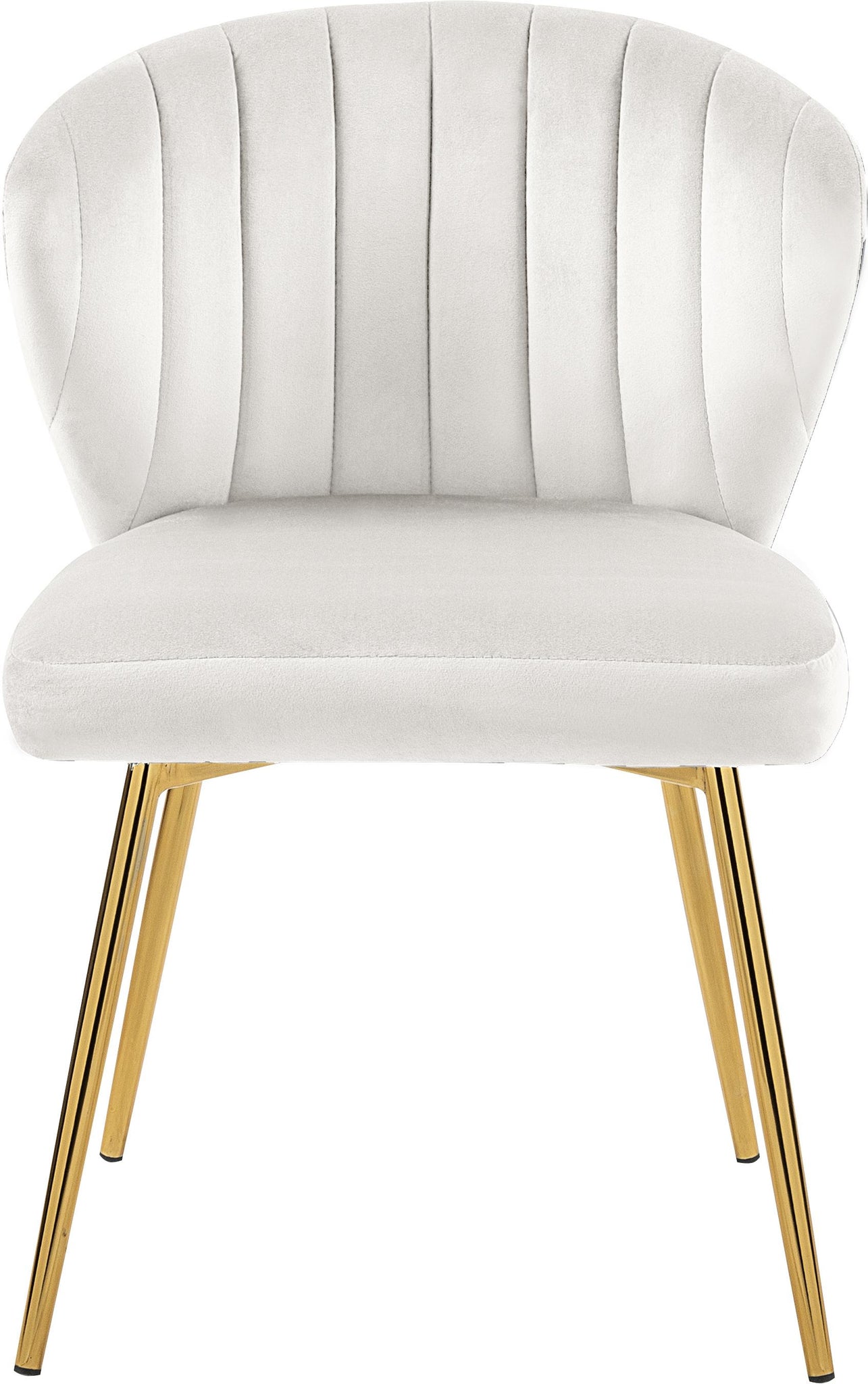 This Finley velvet chair, with its all-over soft cream velvet upholstery, offers elegance and sophistication for your dining room. Designed to elevate your room���s d?�cor in an instant, this seat oozes refinement and beauty with its curved and channel-tufted back and rich gold metal legs. Pair this lovely Finley chair with your favorite contemporary dining table for a seamless presentation.