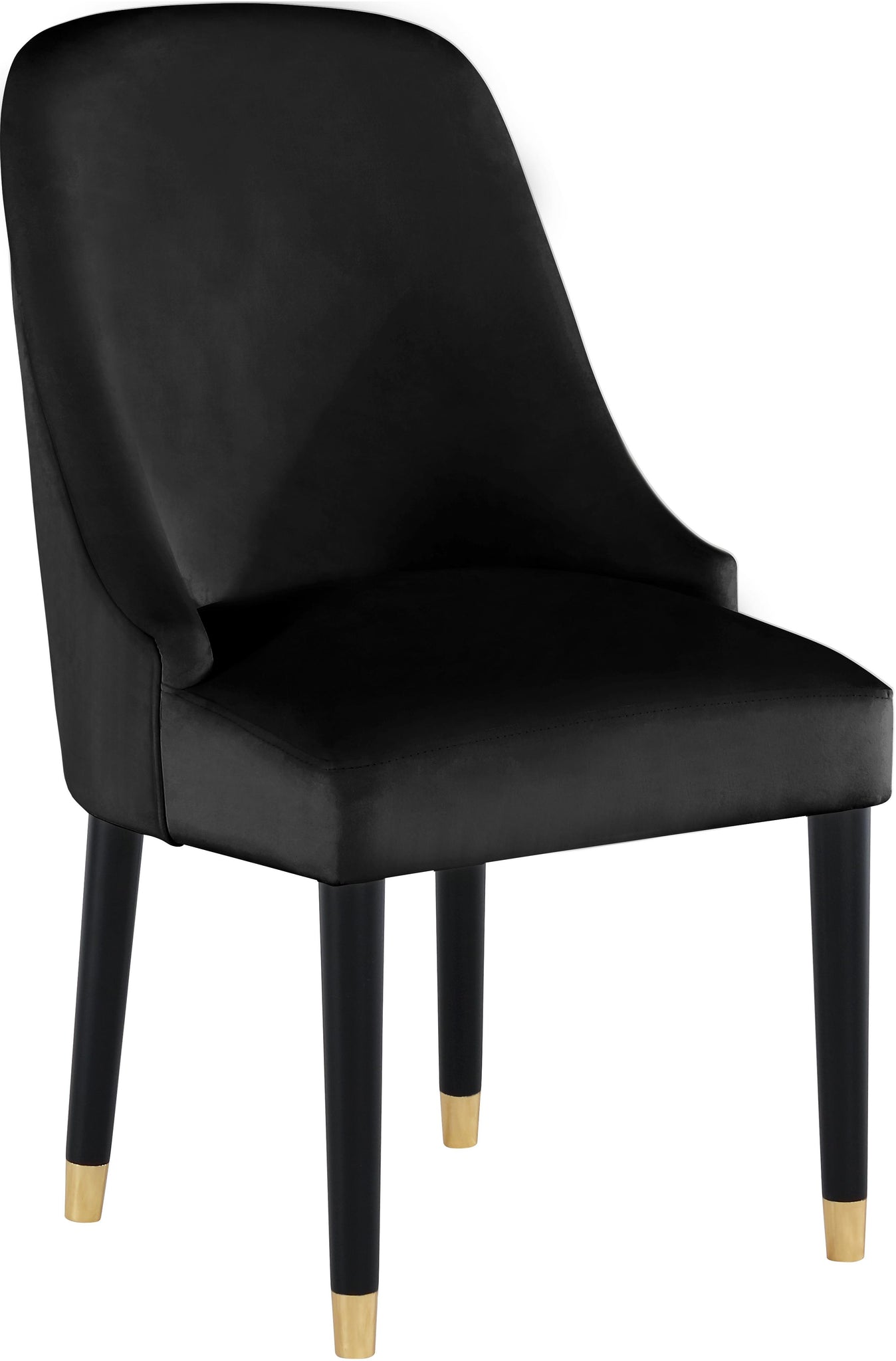 Welcoming comfort awaits you with this Omni velvet dining chair in a soft black velvet design. Upholstered to the hilt in smooth, beckoning velvet, this chair features black wooden espresso legs topped in gold metal tips for a look that���s both elegant and sophisticated. The rounded back and the thick and plump cushions add to the comfort factor of this exceptional seating option.