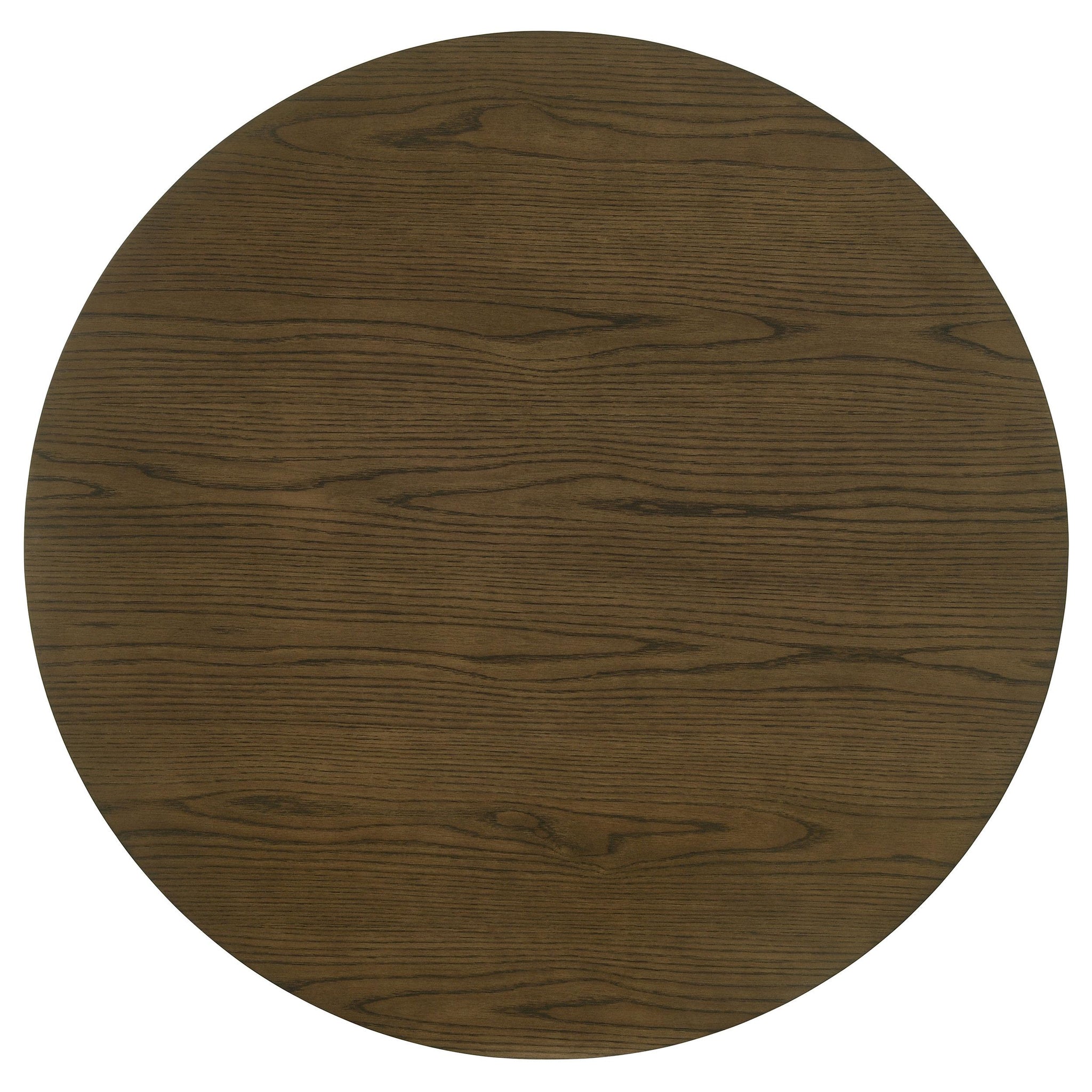 This counter-height dining table brings transitional elegance to casual dining spaces. Crafted from white oak veneer, Asian hardwood, and engineered wood, it features a rich brown finish that adds warmth and sophistication. The table's angular legs provide stability, while an open lower shelf offers additional storage or display space. Perfect for gathering with family or friends, this counter-height table combines style and functionality, making it a standout piece for everyday dining or entertaining.