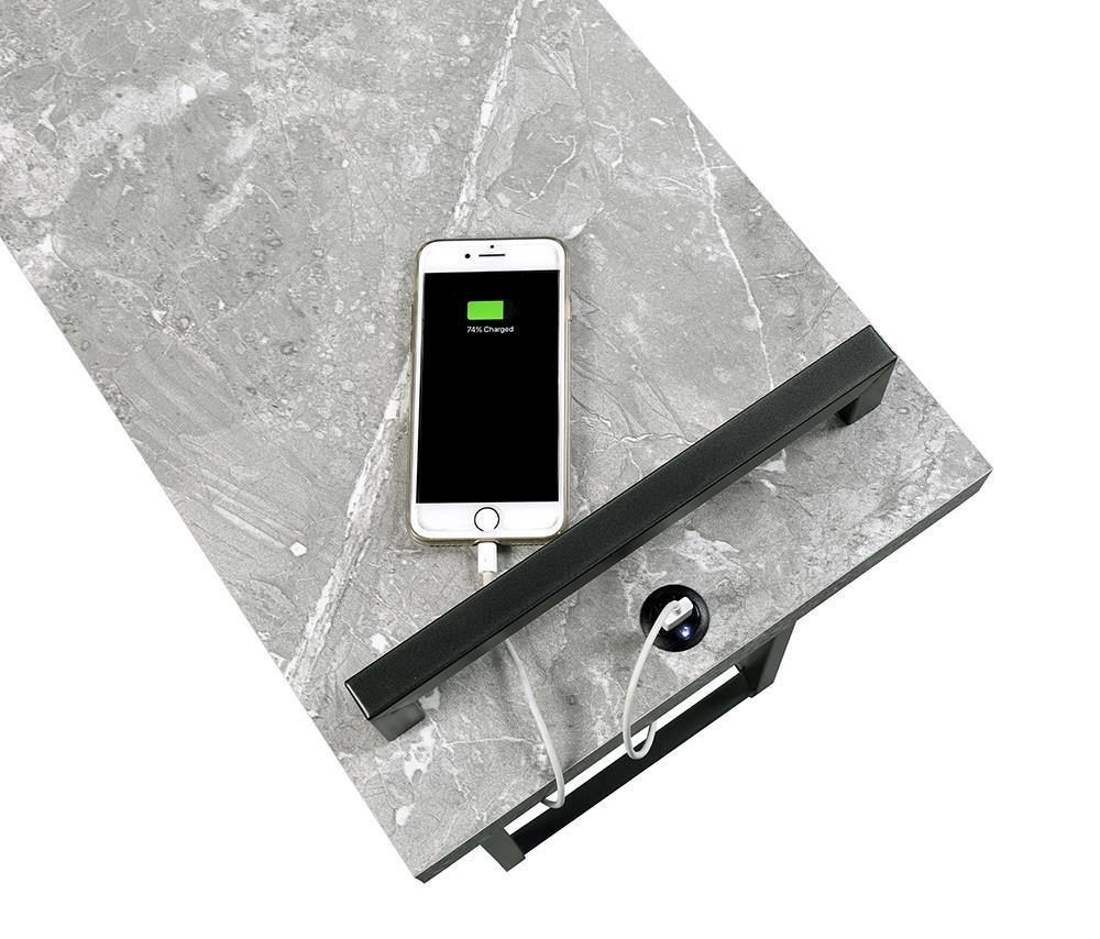 Earthy and modern, this accent table features a floating tabletop design and a minimal C-shaped silhouette. With a flush base that slips beneath seating, slide this table up to reach for refreshments or keep a handheld device close at hand. The sturdy steel base offers ample support for heavier objects, while the powder coated finish offers a contrasting element. Perfect for an industrial style living room, this functional accent table keeps your devices charged with a USB port in the back. A narrow tabletop makes this table perfect for compact spaces.