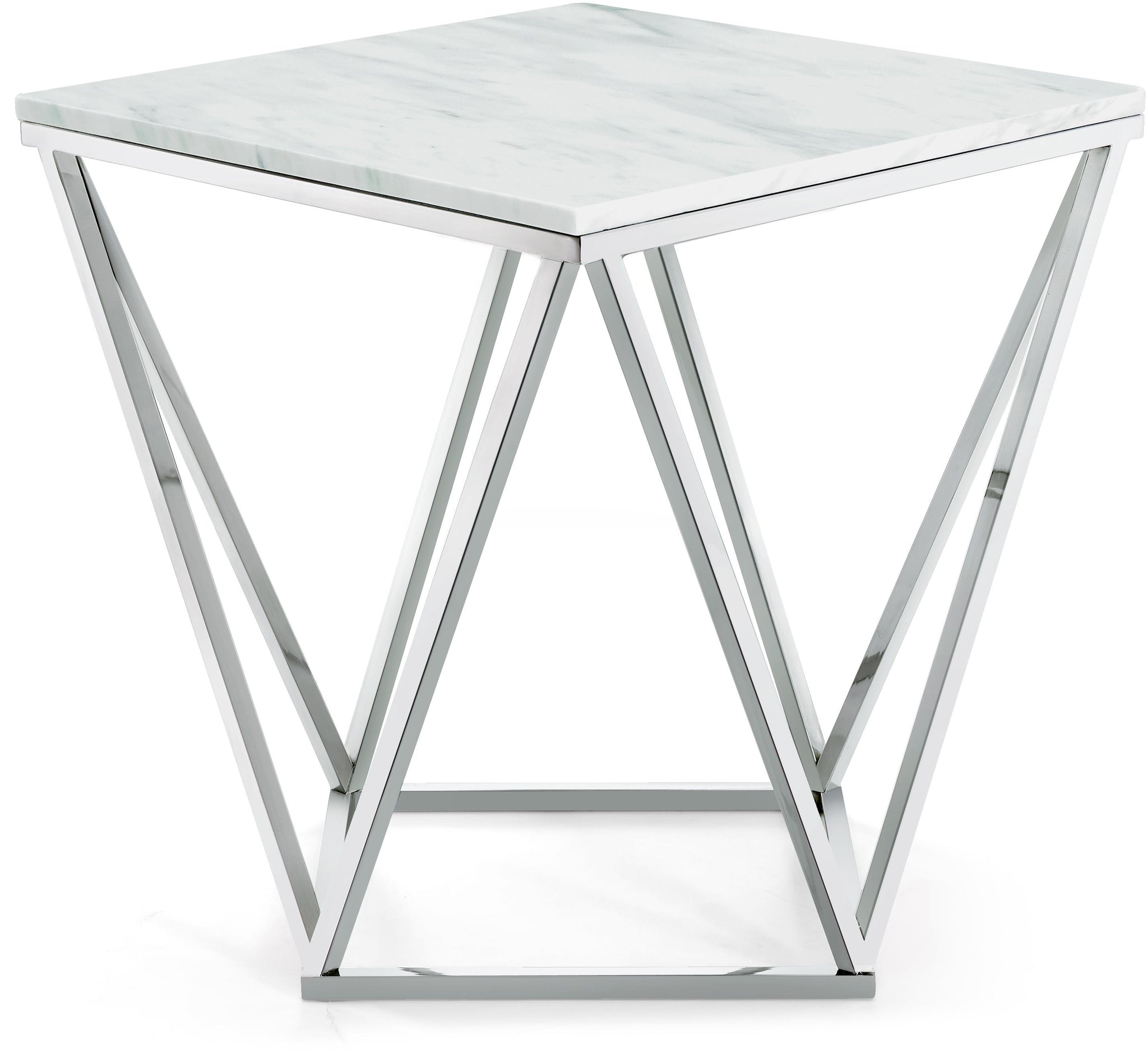 Keep the modern vibe going with this Skyler stainless steel end table from Meridian Furniture. This end table features architectural bases with a sculptural design that's chic and contemporary. The tops of each table feature solid stone tops for durability and remarkable style.
