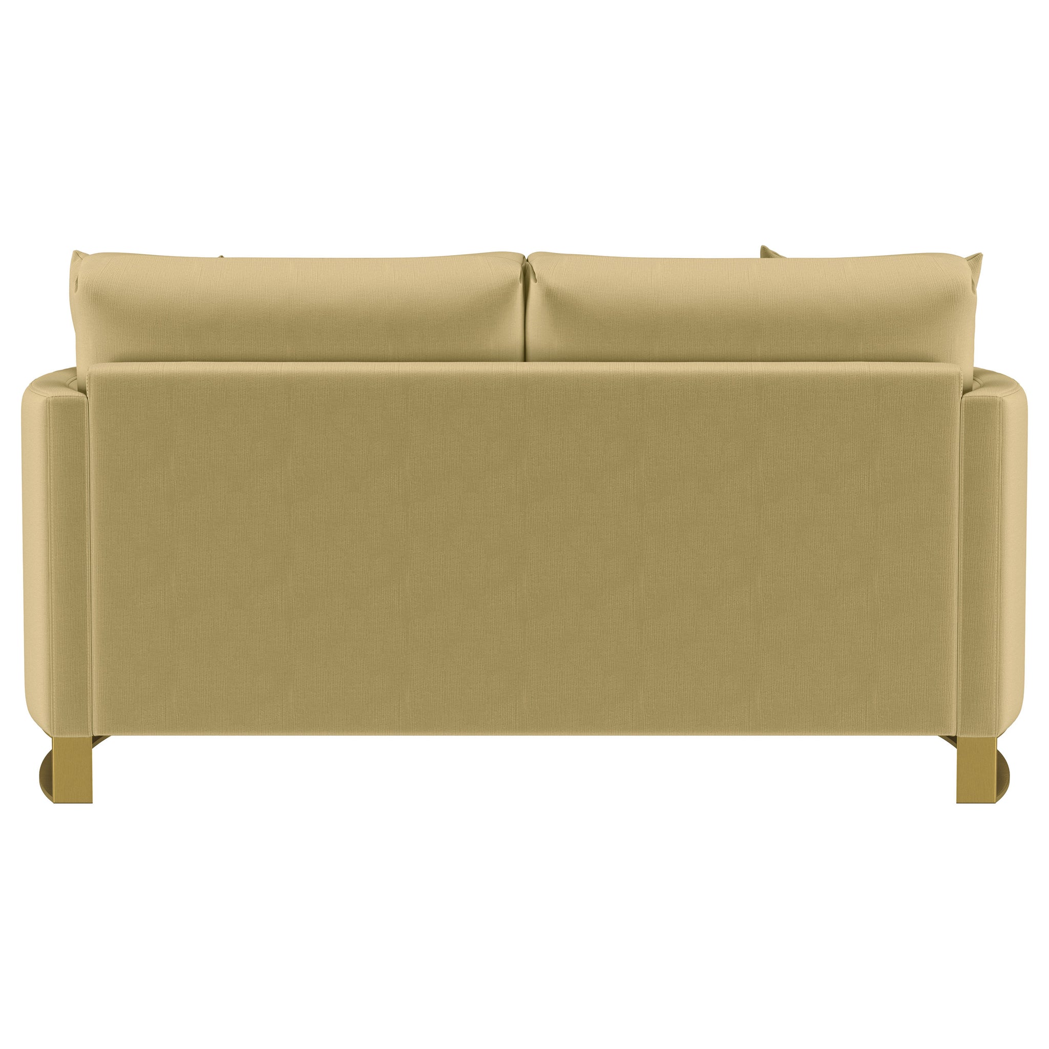 Indulge in opulent comfort with this textured velvet loveseat. Its reversible feather blend seat and back cushions, complemented by curved arms and gold stainless steel legs. Smooth upholstery and lustrous details blend simplicity with timeless splendor, making this piece a perfect focal point for refined interiors. With its inviting profile and graceful presence, it elevates both style and relaxation.