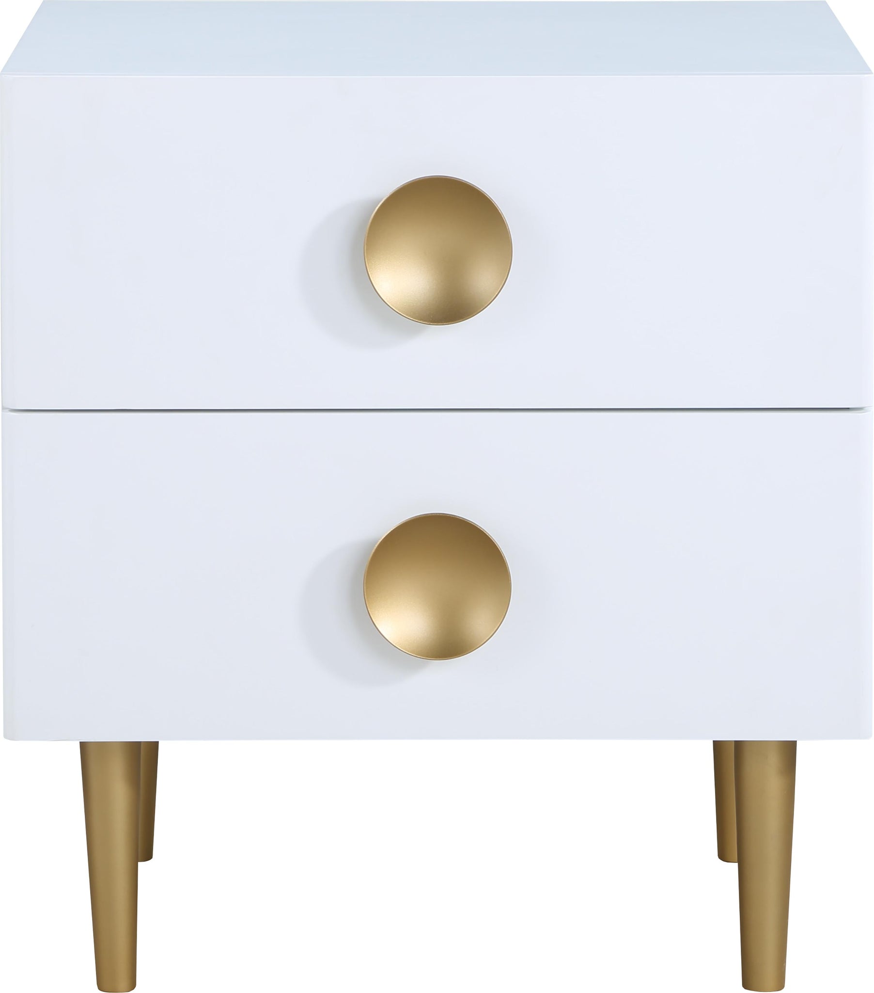 Watch your d?�cor cascade to new heights when you bring home this Zayne night stand. It features a white finish that sets an instant contemporary vibe in your space. Its brushed gold metal legs and handle add a sophisticated slant to the piece���s design, ensuring it���s a simple and easy fit with other modern pieces. Pair this unit with other items in the Zayne collection for a seamless presentation in your room.