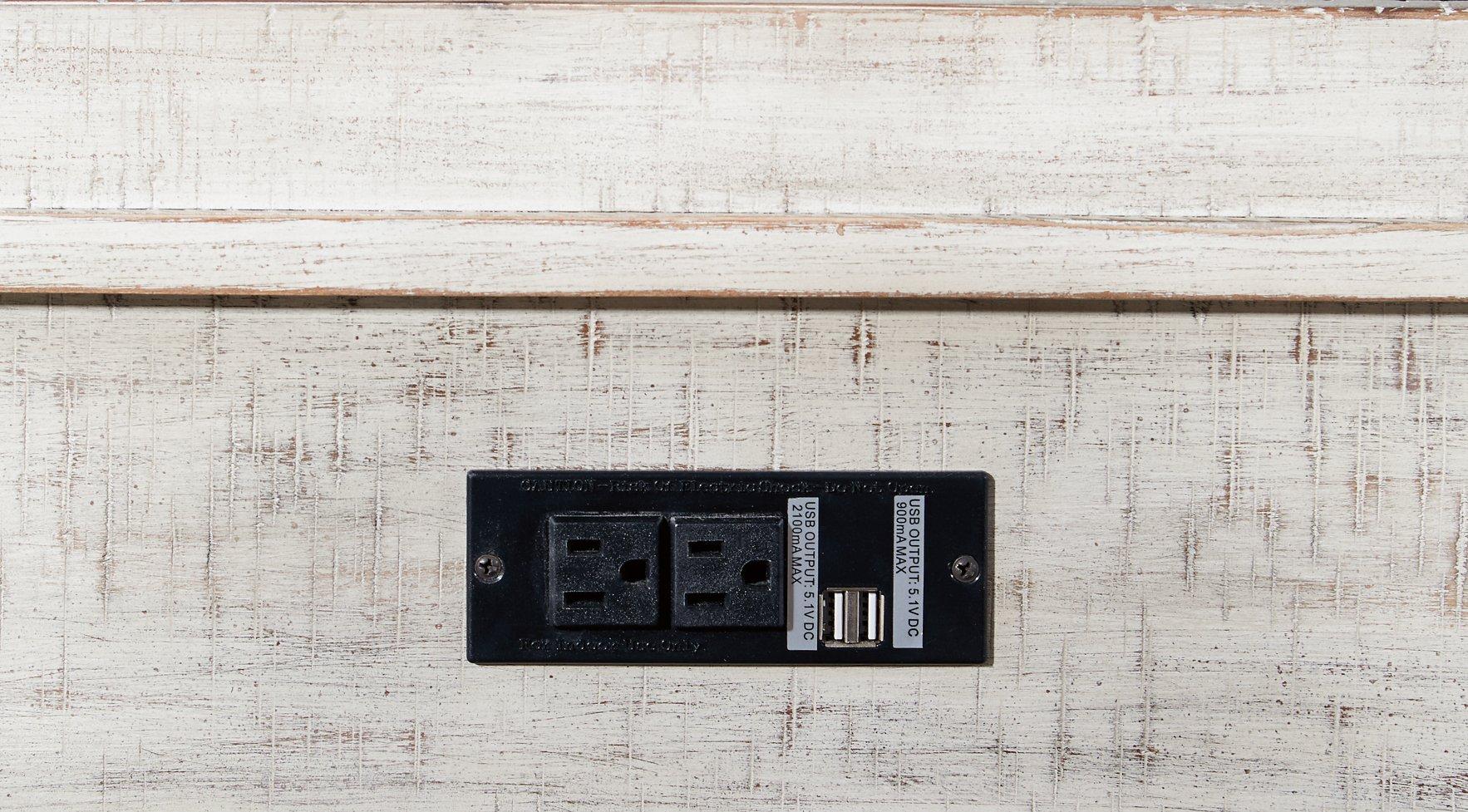 Set on casters for easy mobility, this printer stand rolls out a fresh look in modern farmhouse living. Two smooth-gliding drawers with dovetail construction reflect high quality that never goes out of fashion. Pair of electrical outlets and USB charging ports make it an indispensable home office essential.