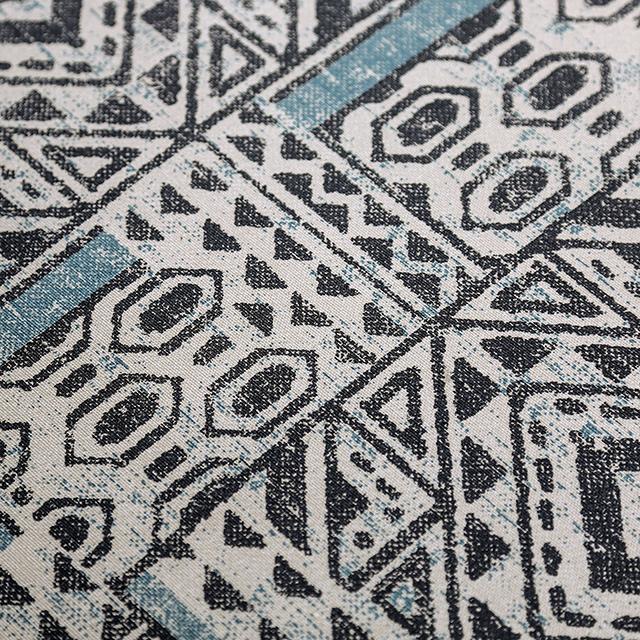 Wrapped in a unique tribal pattern chenille fabric, this ottoman features firm seating and large, tapered block legs. It offers a priceless chance to relax and unwind on a trendy living room centerpiece.