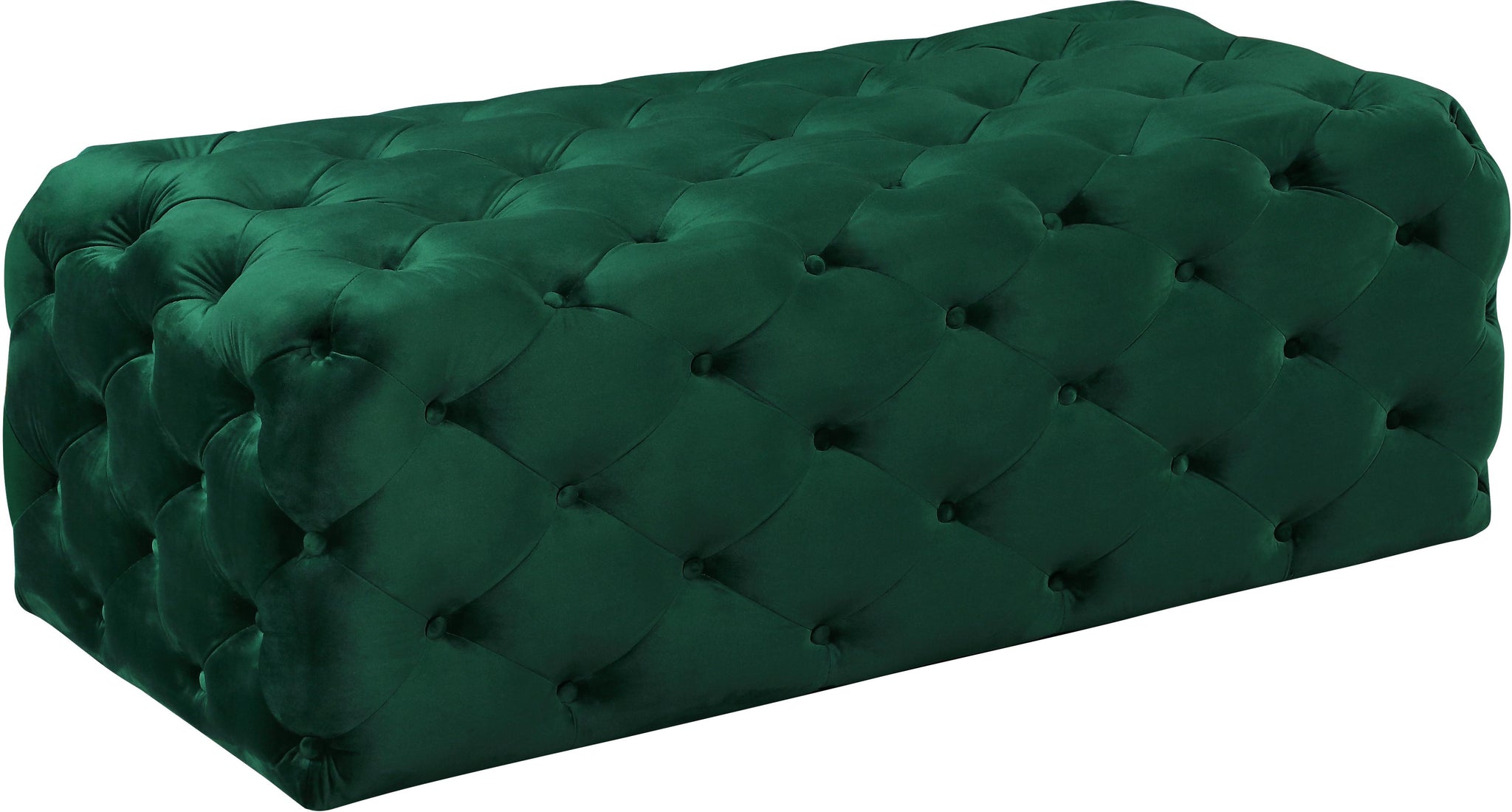Prop your feet up and get comfy with the Casey green velvet ottoman. This elegant ottoman features a glamorous design with heavy tufting from top to bottom, giving it a sophisticated, upscale look. The padding beneath its velvet upholstery is plump and thick, so your feet and lower legs sink into it in lavish comfort. Buy it on its own, or pair it with other items in the collection for a coordinated vibe in your space.