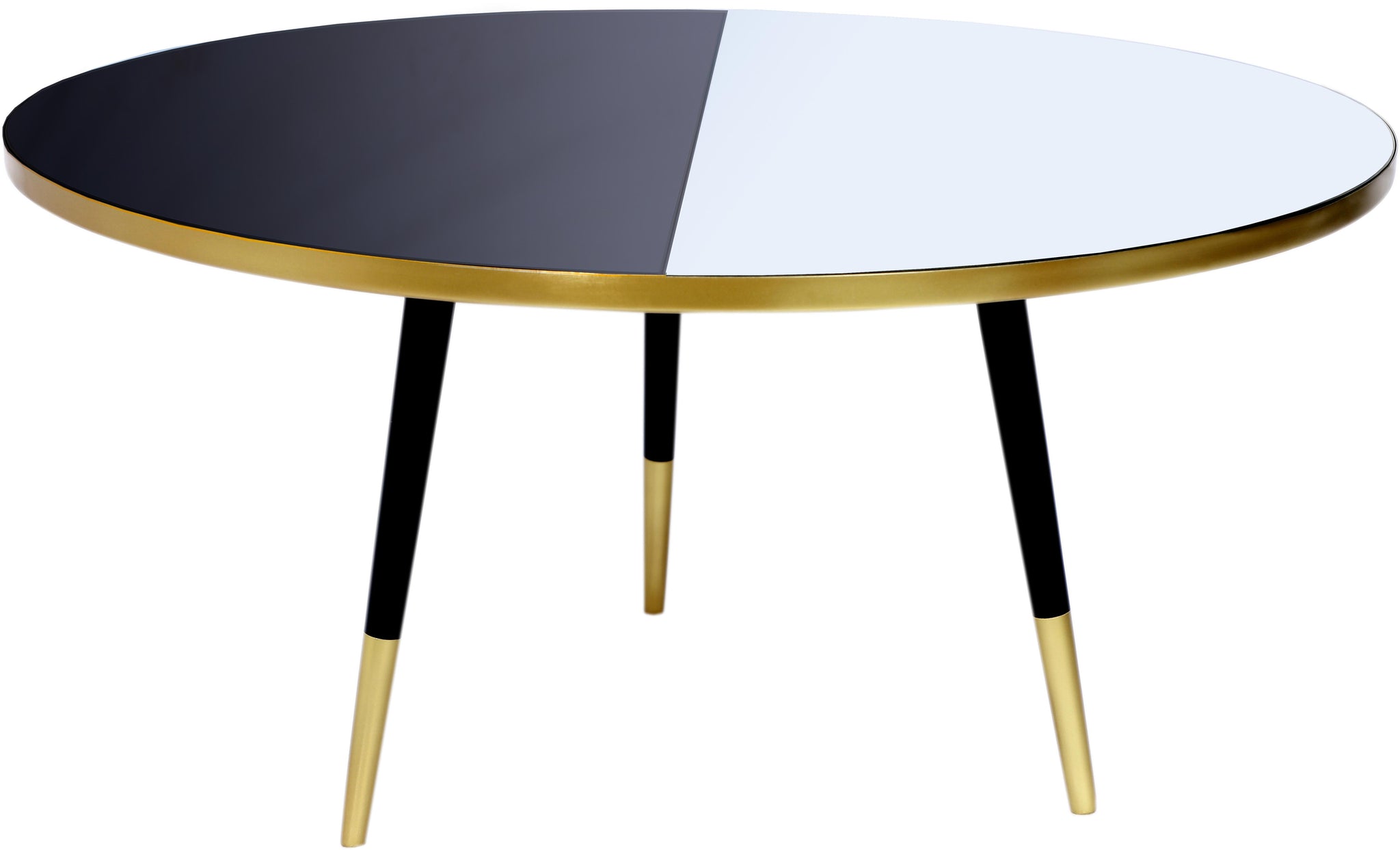 Bestow a simplistic vibe in your room with this Reflection coffee table. This pretty table offers a back-to-basics vibe that oozes minimalistic charm, with its matte black legs and their gold tips contrasting nicely with the mirrored top. Metal construction ensures the table���s long-lived beauty and performance in your space. Buy it alongside the Reflection end table for a complete look in the great room, family room, or living room.