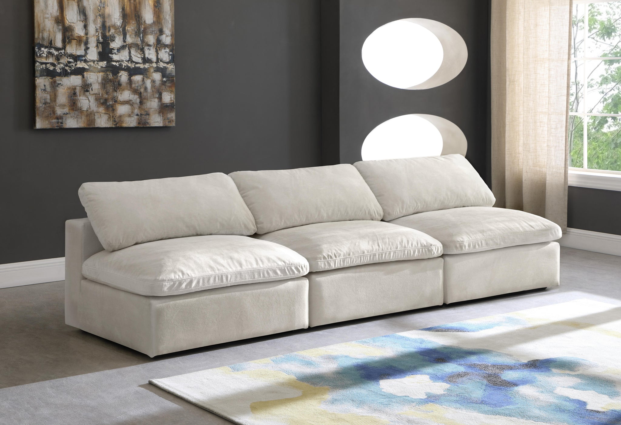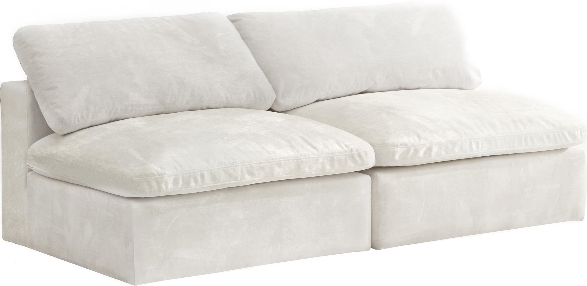 Bring home this Cozy armless sofa for a fresh new look. Embrace casual elegance with this Cozy velvet cloud modular down-filled seating option. Handsome from all angles, this piece features soft cream velvet upholstery to make it an easy fit in any room. This modular piece can be combined with other items in the Cozy collection to create a seating group of your dreams. The cushions on this piece are exceptionally comfortable���and filled with down for luxury that you deserve as you rest and relax.