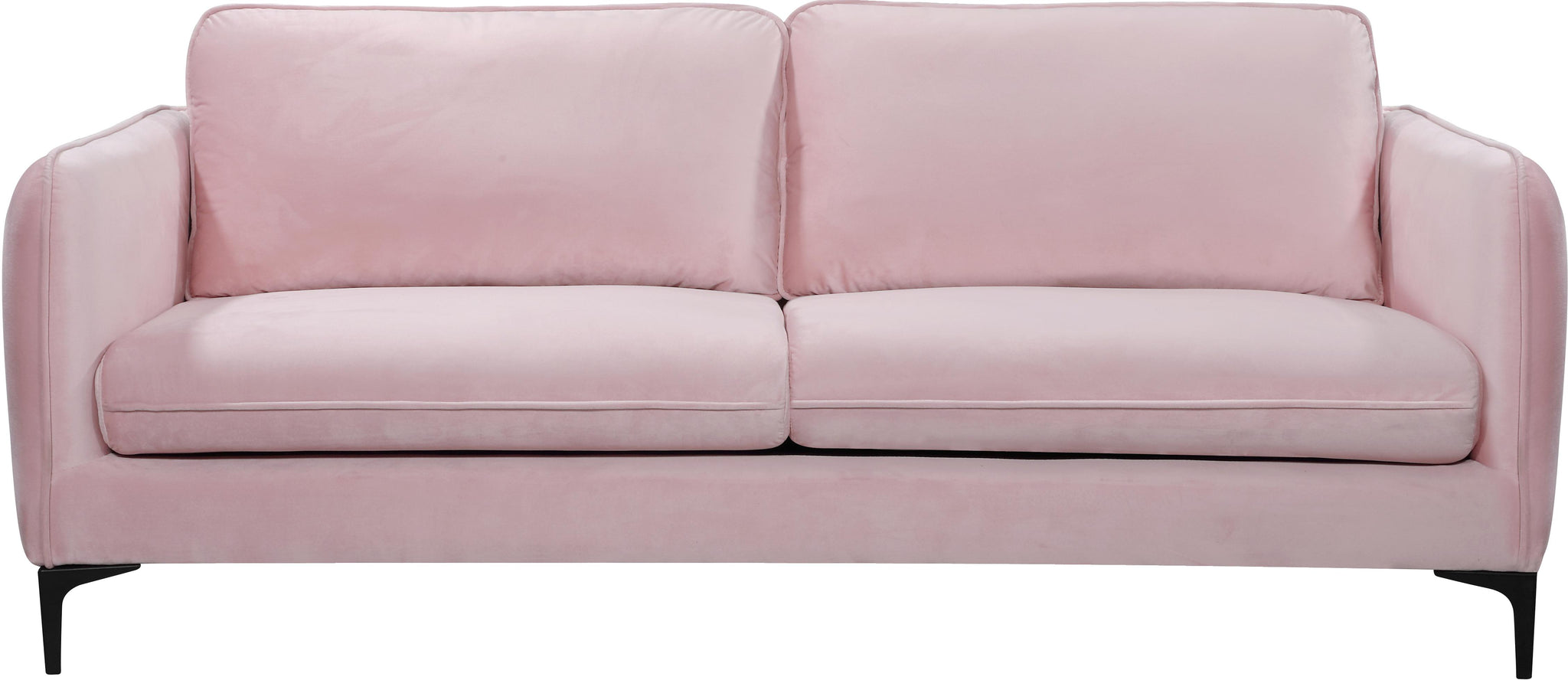 Transform your living space into a chic haven with this stunning Poppy Pink Velvet Sofa from Meridian Furniture. Rich pink velvet upholstery creates a soft, luxurious space for you to curl up with a book or in front of the TV on a rainy day, or just kick back and relax after a long day at work. Its plush back cushion offers ample support for your back while adding to the sofa's contemporary design, and matte black metal legs pull the piece together, making it a stylish choice for any room.