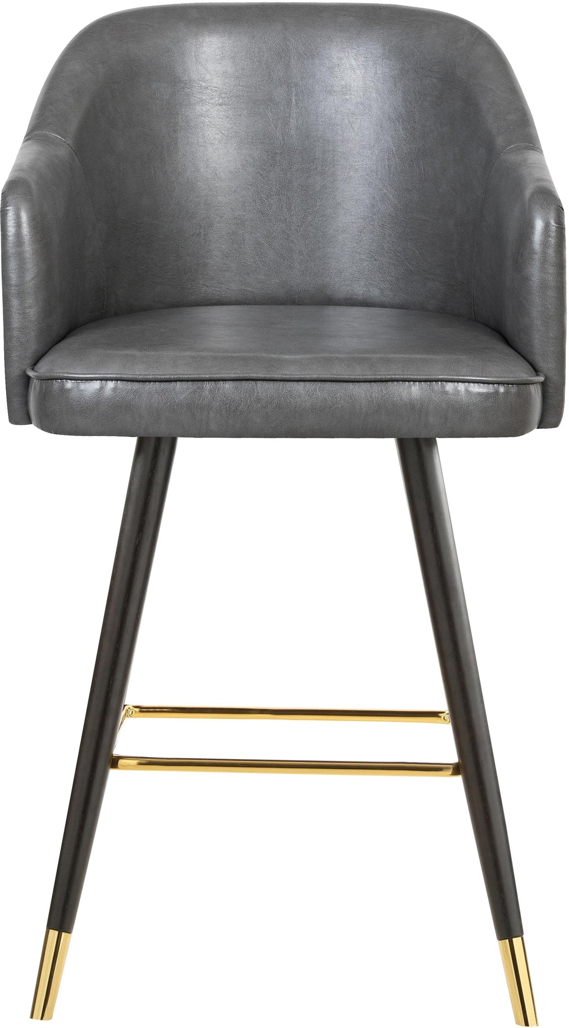 Traditional beauty comes to your home bar or counter area with this Barbosa faux leather bar or counter stool. The rich, soft grey faux leather looks so real, folks will really think it is. The chair rests on espresso wooden legs and has a gold footrest with gold caps on its tips for a modish finish. Deep tufting on the back of the seat adds a classic sense of refined style.