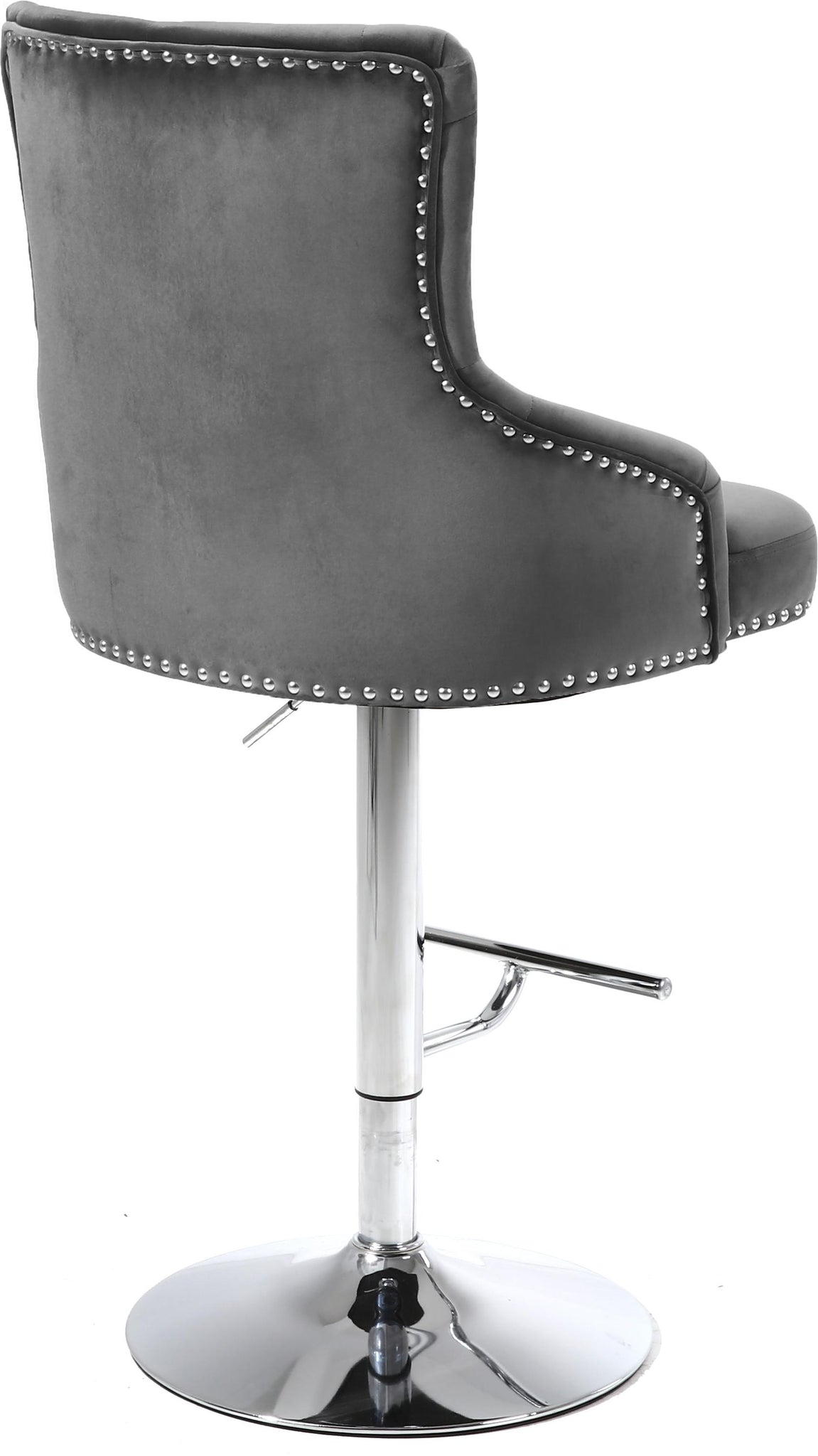 Make this Claude Grey Velvet Adjustable Stool everyone's new favorite seat. The high-back design supports guests in comfort, while rich velvet upholstery in a crisp grey color gives the stool a svelte, modern look. Chrome nailhead trim adds another level of luxury, and the tufted design enables the cushioned back to keep its loft for maximum comfort. Add it to the bar or the kitchen counter to create a modish vibe in your room.