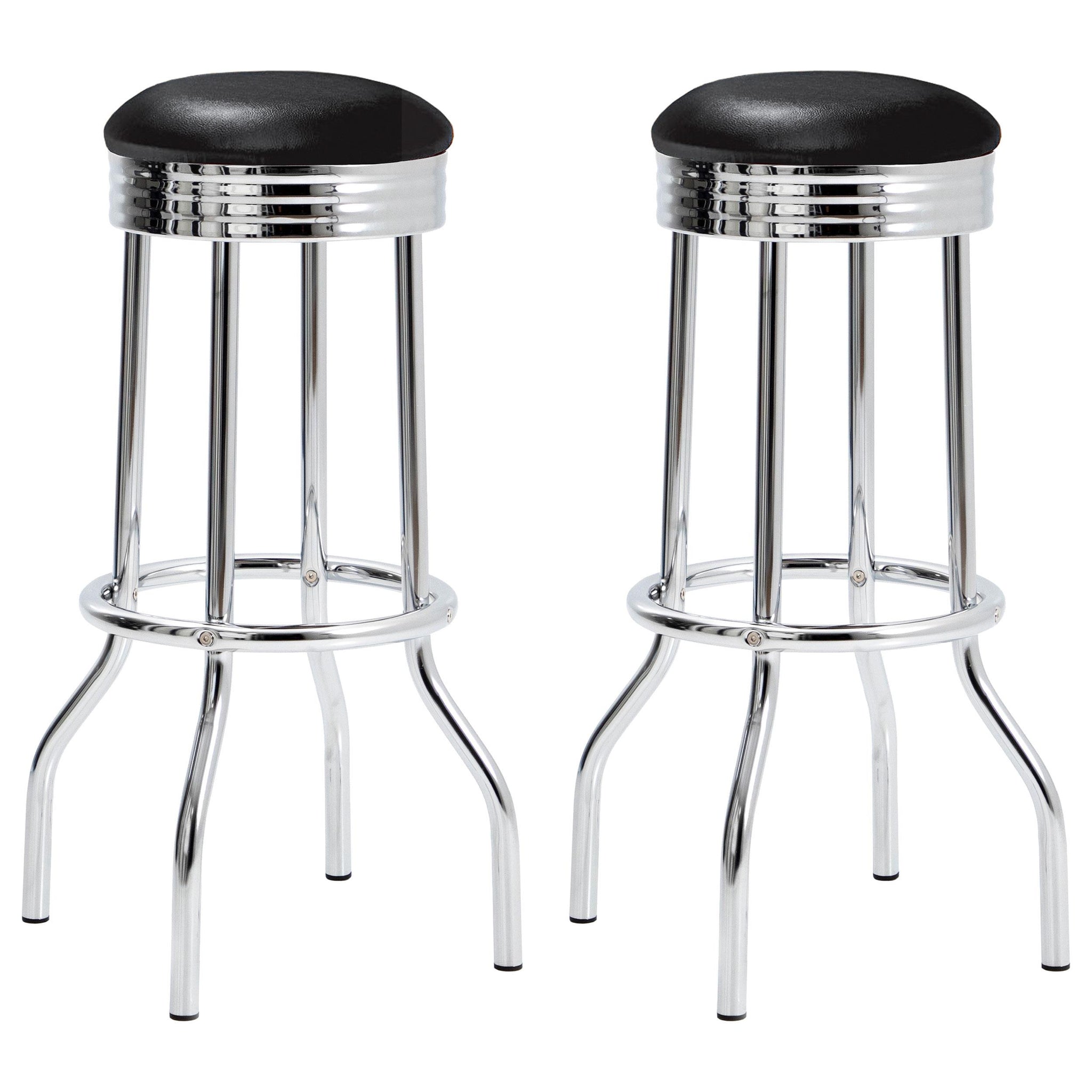 Theodore Upholstered Top Bar Stools Black and Chrome (Set of 2)