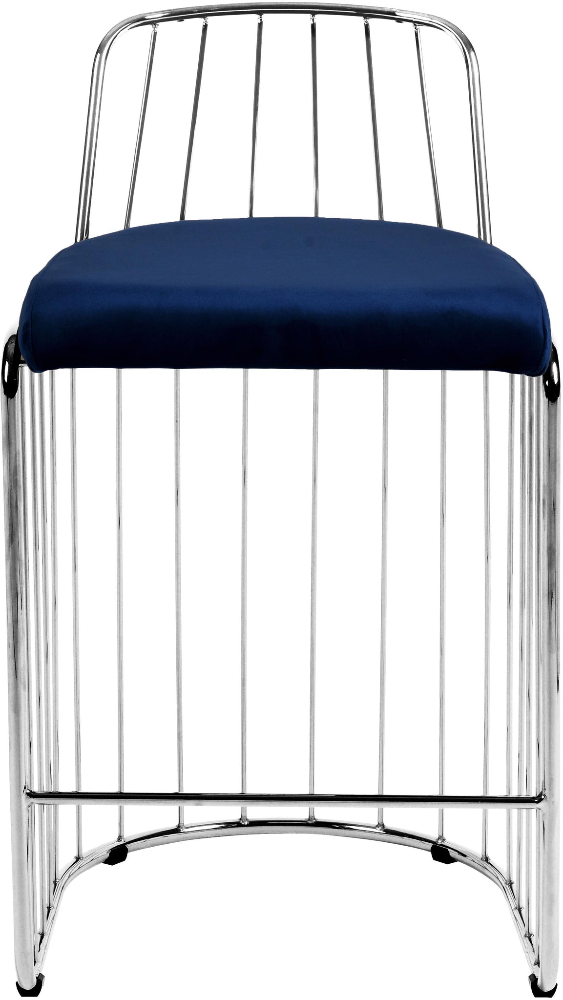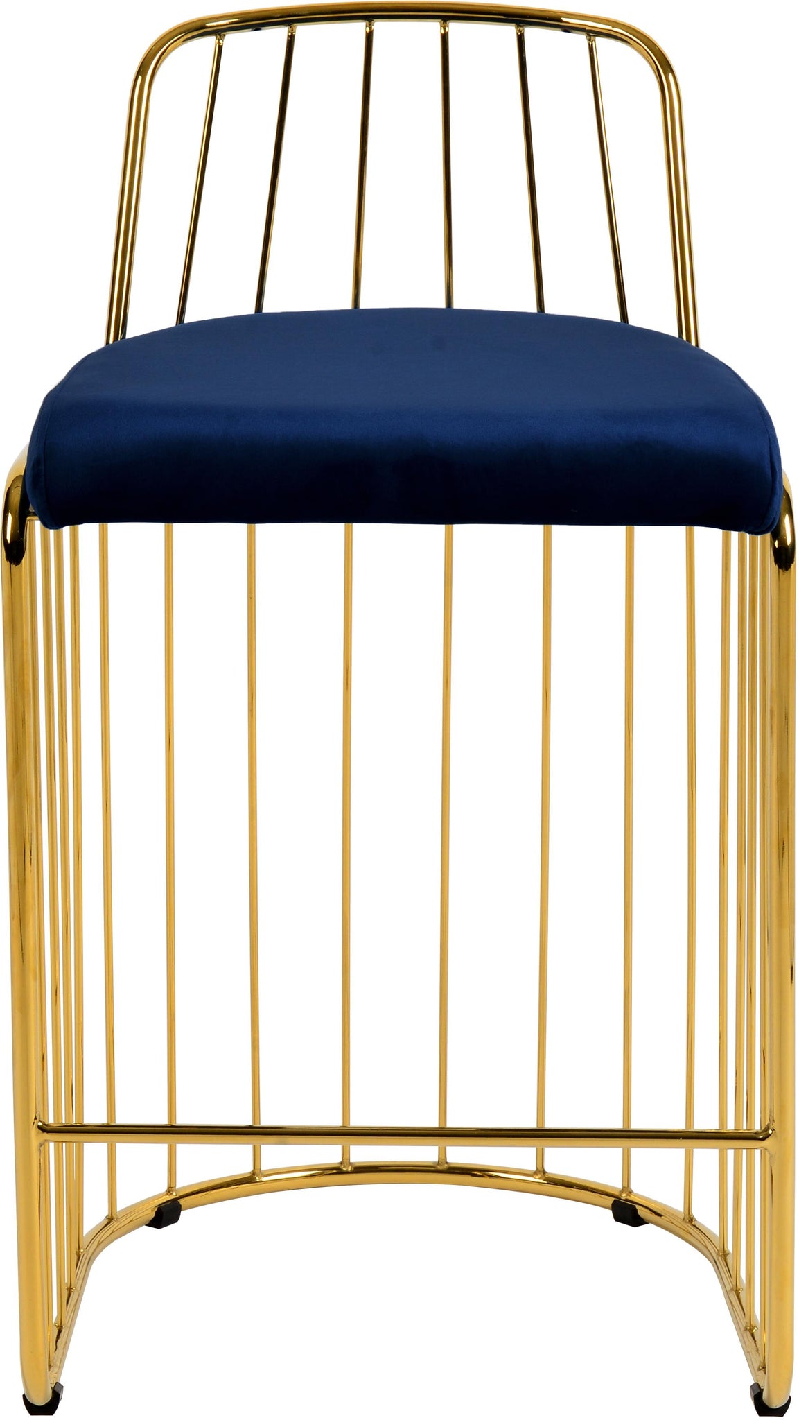 Add dramatic flair to your dining area with this Gio navy velvet stool. Featuring a plush black velvet cushion and polished gold metal legs, this counter-height stool is perfect for sitting at your modern breakfast bar while enjoying avocado toast for brunch or tossing back a few drinks with friends after work. Its wired contemporary design makes this chair stand out, ensuring it's the focal point of your dining area.