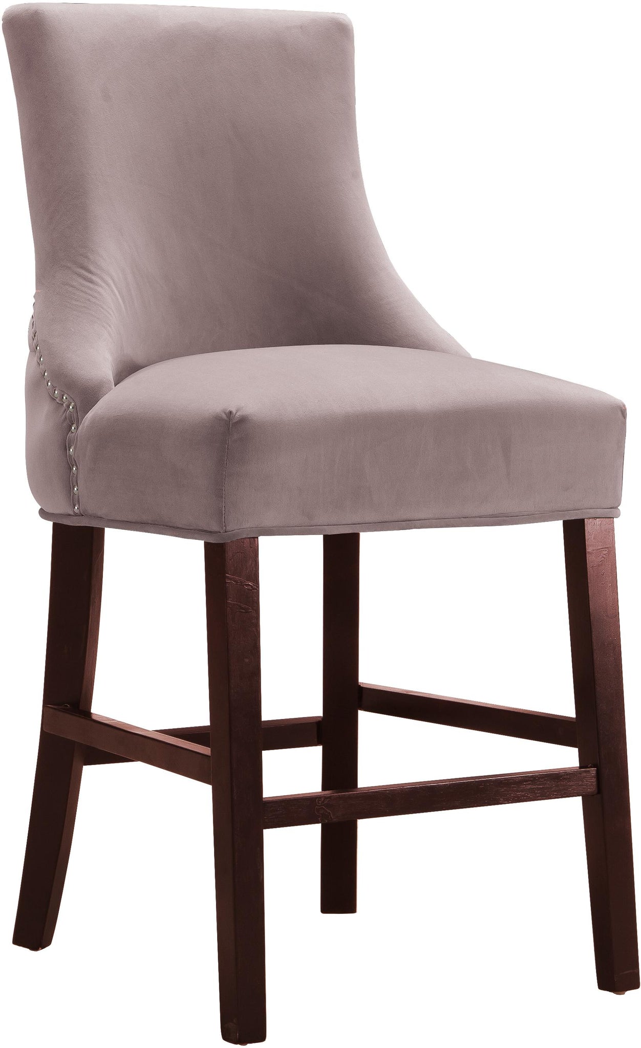 Add this Hannah Pink Velvet Stool to your home bar or kitchen counter to seat guests comfortably and in chic fashion. The pink velvet upholstery is thick and durable and has a slight sheen for a touch of glam. The back of the seat has deep button tufts for a posh look, while the front features smooth velvet upholstery for sleek comfort. The base is made from wood with an espresso finish and has a foot rail for extra support and comfort as you sit.