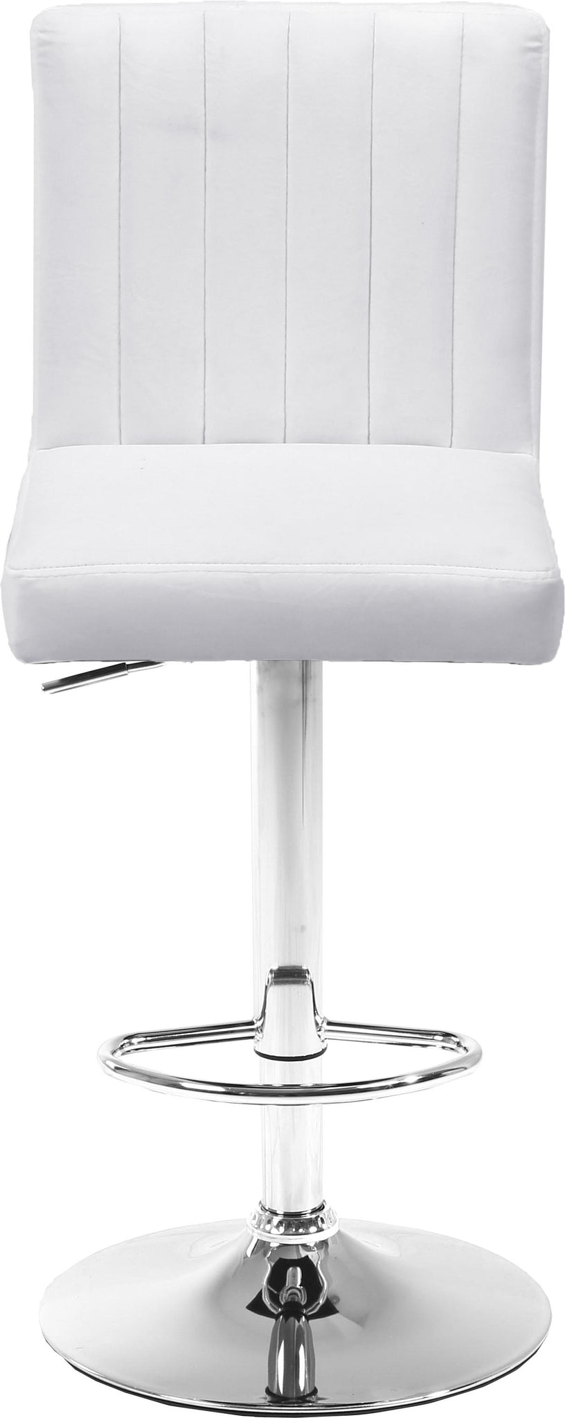 Relax in total comfort while sipping cocktails from this Joel White Velvet Adjustable Stool. Rich velvet upholstery gives this stool a luxe look that oozes glamour and sophistication with every turn. The chrome-finished base has a definitive modern edge, and a foot rail on the bottom gives you a spot to rest your feet while you unwind. Easily raise or lower the seat with just the touch of a lever to ensure custom comfort at the home bar or your kitchen counter.