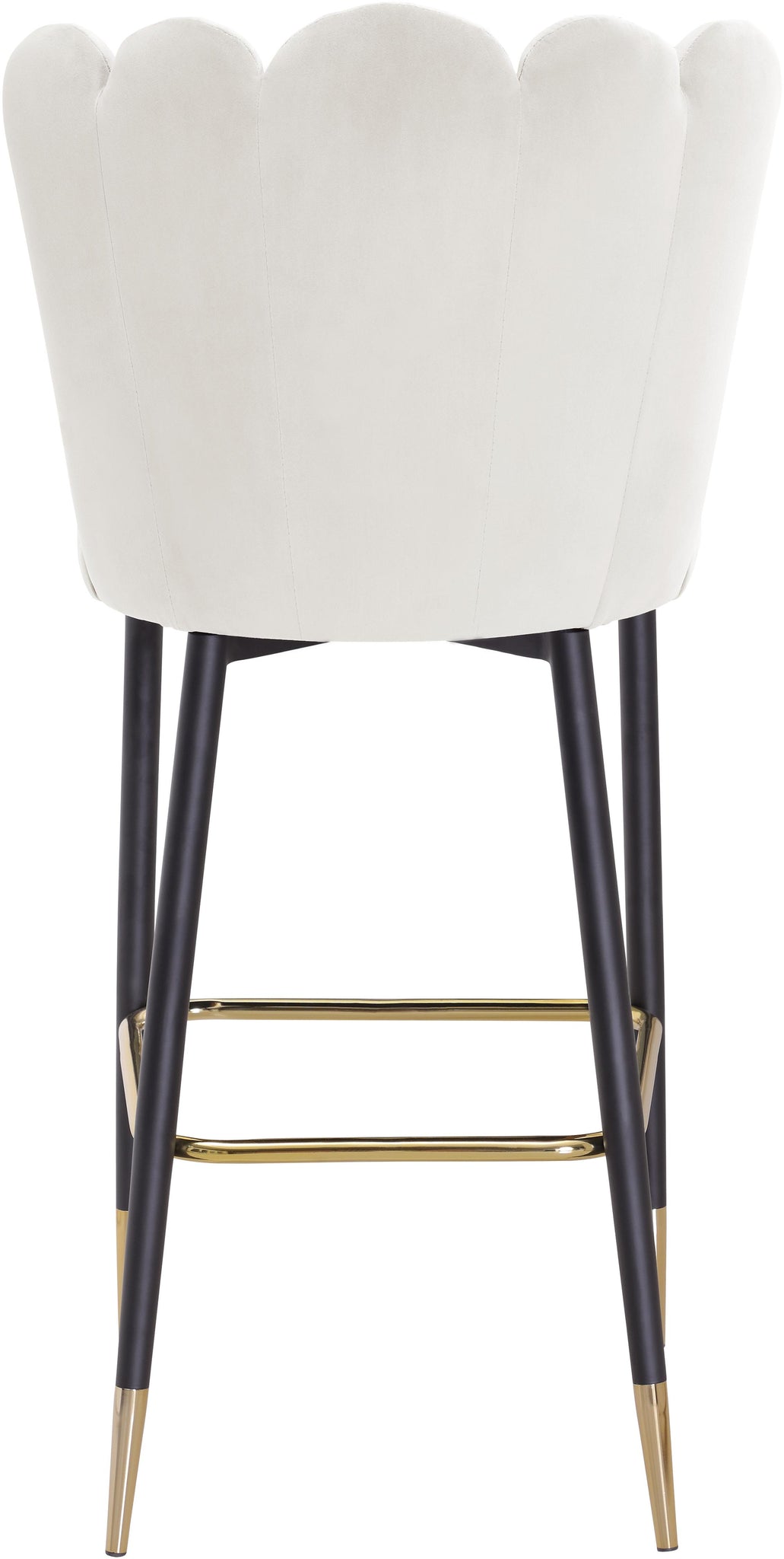 Fall fast and hard for the beautiful look of this Lily Bar Stool from Meridian Furniture. This lovely stool features a striking cream velvet fan-style back with deep tufting that helps the padding inside stay full and aloft for added comfort. The cushioned seat and back are upholstered to the hilt for maximum luxury and beauty. Black metal legs with a matte finish and gold tips add contemporary appeal to this handsome stool whether used at the bar or kitchen counter.