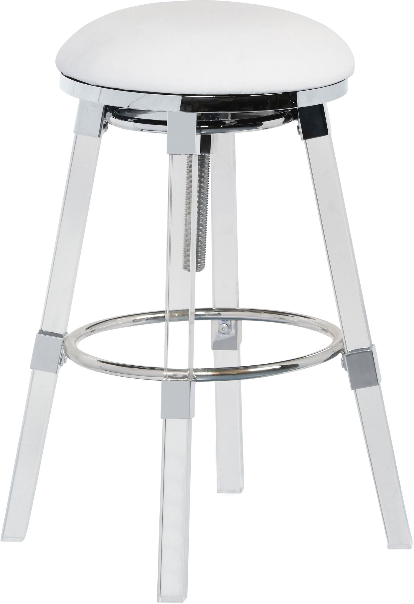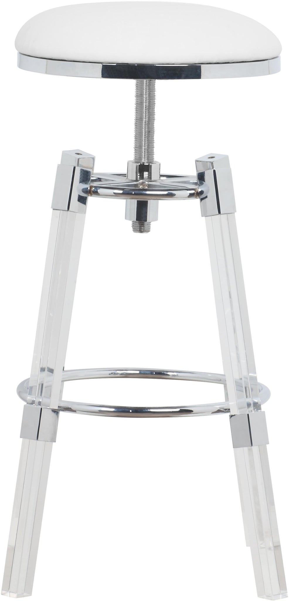 Make your kitchen counter the spot to be when you bring home this Venus Faux Leather Adjustable Bar and Counter Stool. This stool is modern through and through with its minimalist design and back-to-basics looks. The backless stool features a thick acrylic and chrome base that's super modish and sleek, and it's topped with a white faux leather cushion for comfort as you wine or dine. Adjust the stool easily with the mechanism below the seat to make it counter or bar height as needed.